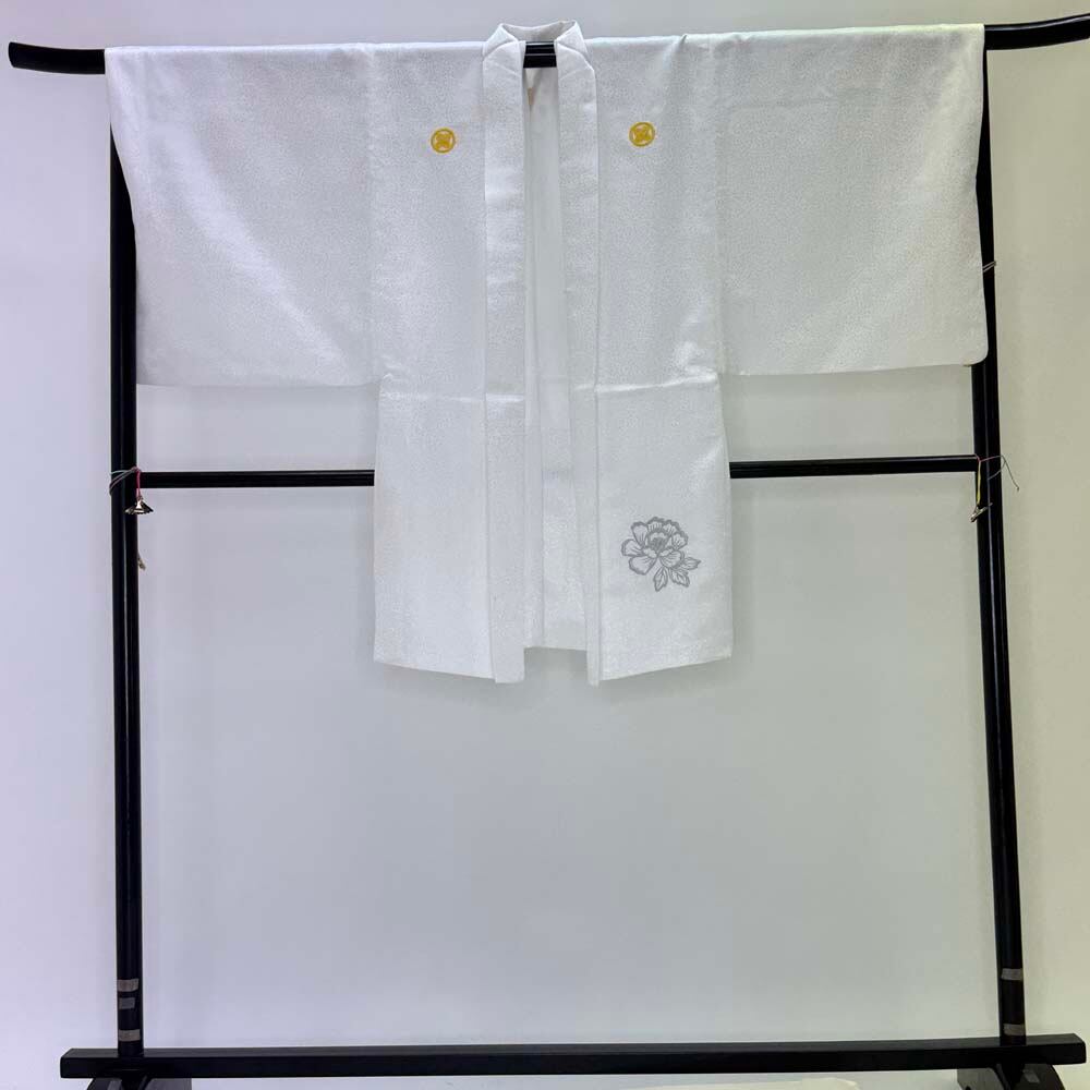 羽織には貼紋の丸に違い鷹の羽の五つ紋が付いています。