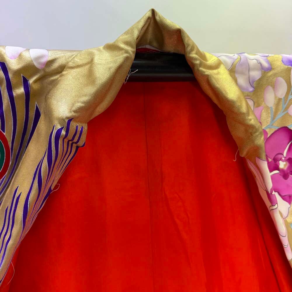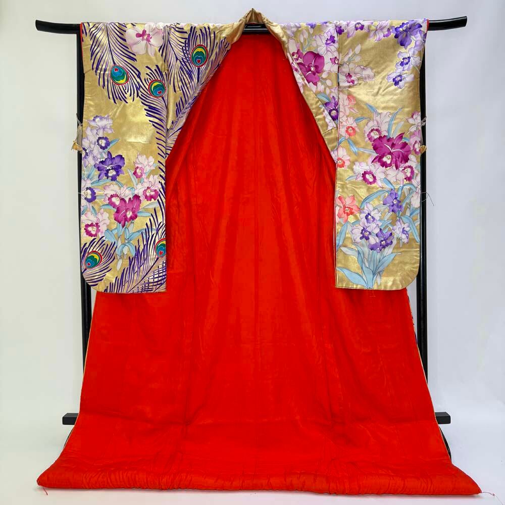 色打掛 正絹 鶴 刺繍 金 紫 打掛 花嫁衣裳 婚礼 リサイクル 中古 ブライダル ウエディング 着物 4916