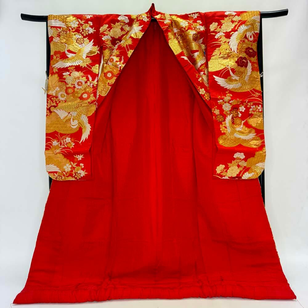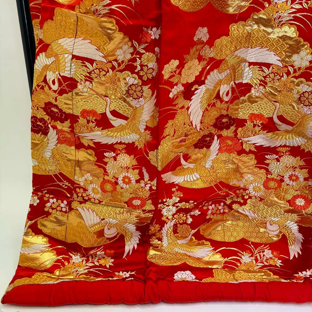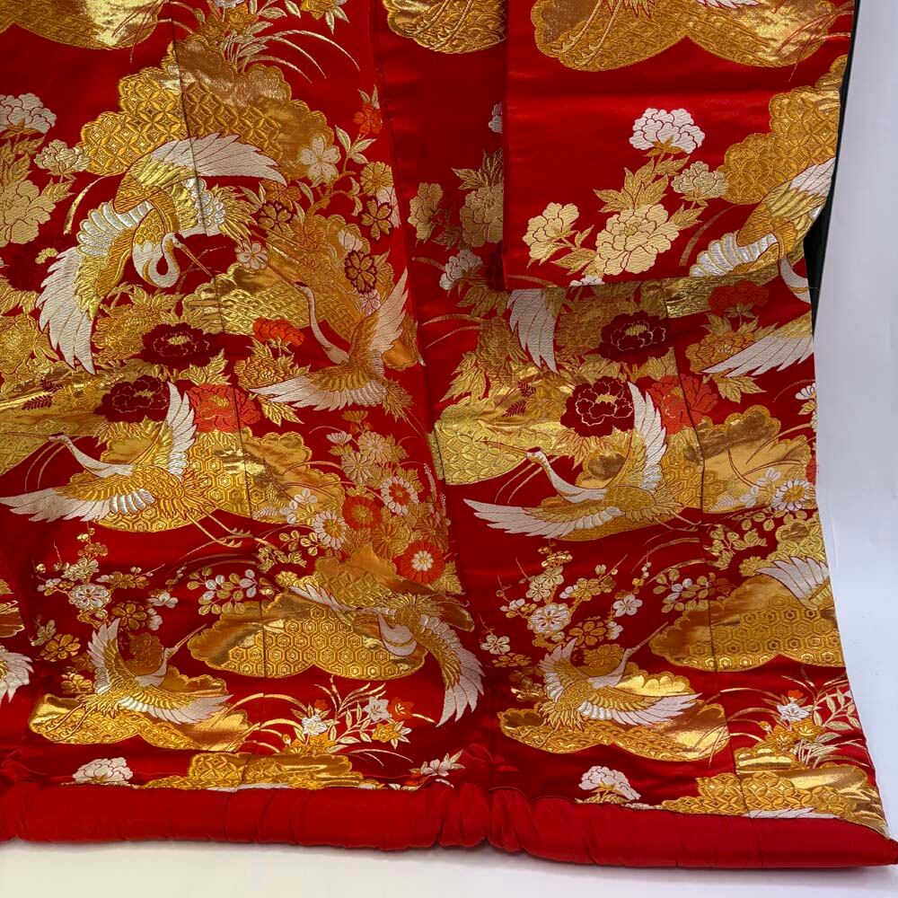 色打掛 正絹 鶴 刺繍 赤 金 打掛 花嫁衣裳 婚礼 リサイクル 中古 ブライダル ウエディング 着物 4922