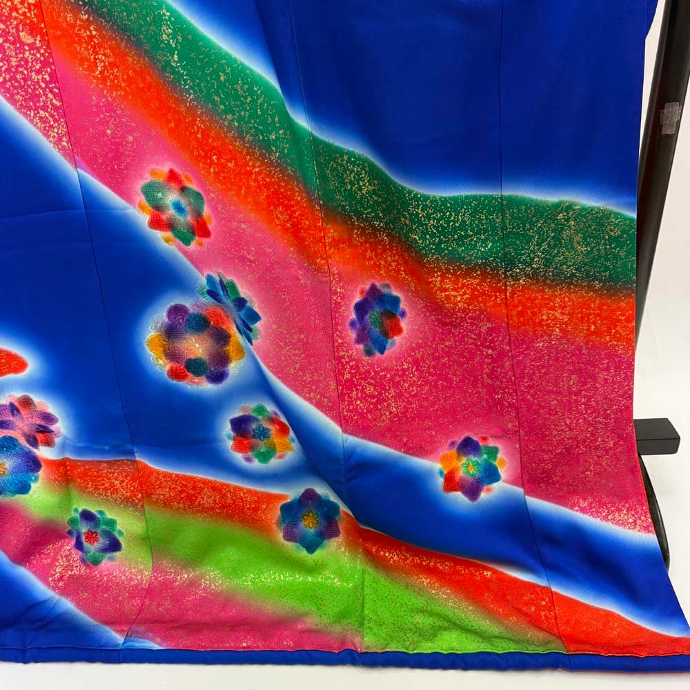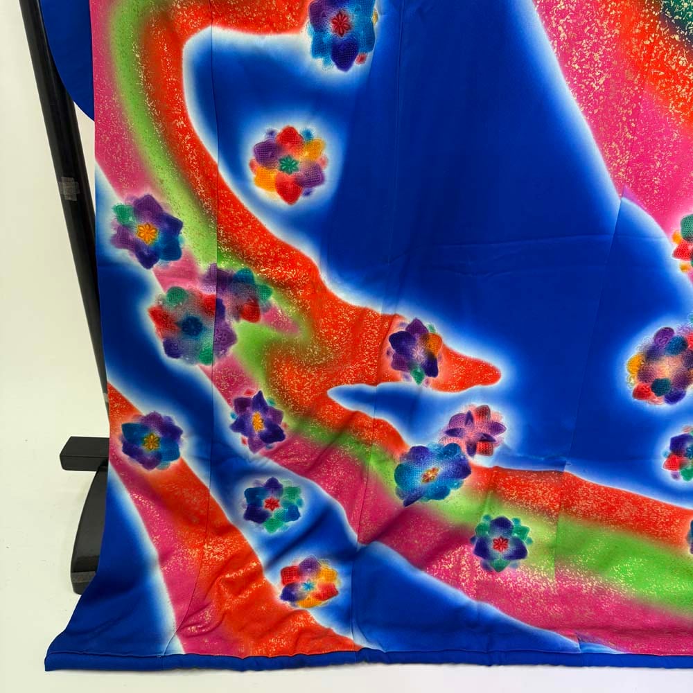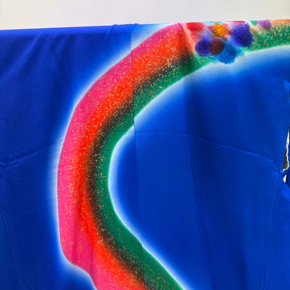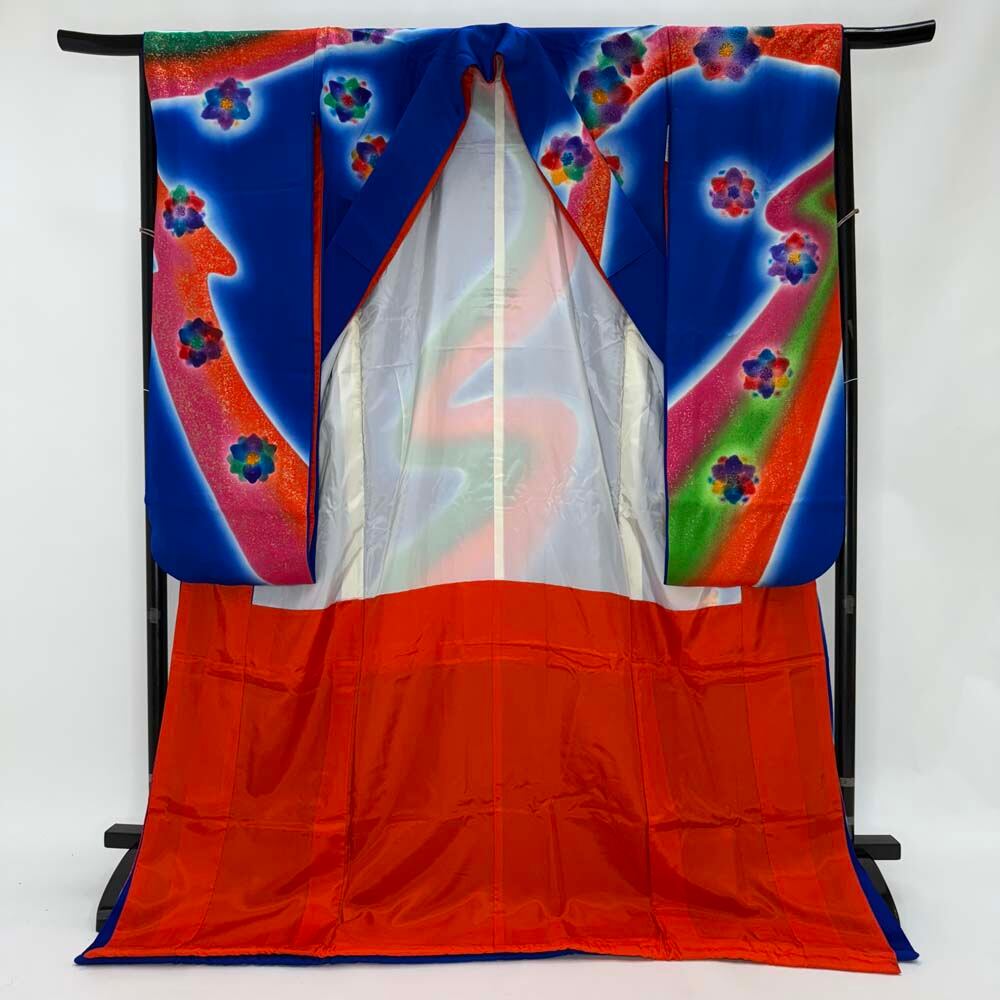 本振袖 引き振袖 正絹 青色 汕頭刺繍 花柄 古典 刺繍 結婚式 裄65.5cm 身丈187cm Bランク 花嫁衣装 Mサイズ 4936