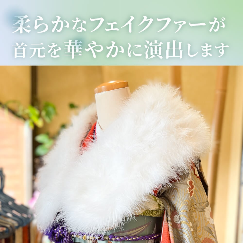 成人式におすすめのフェイクファーショールです。