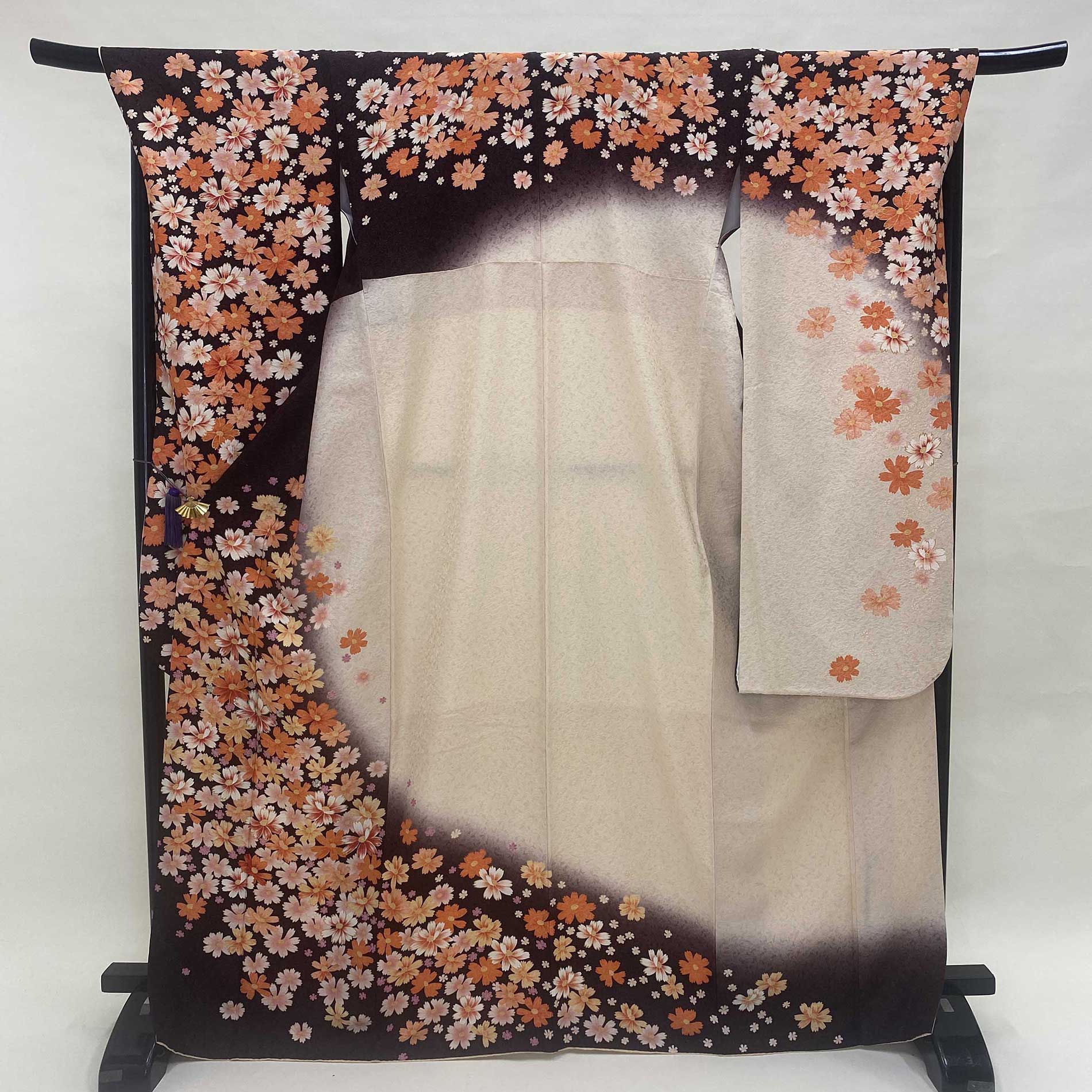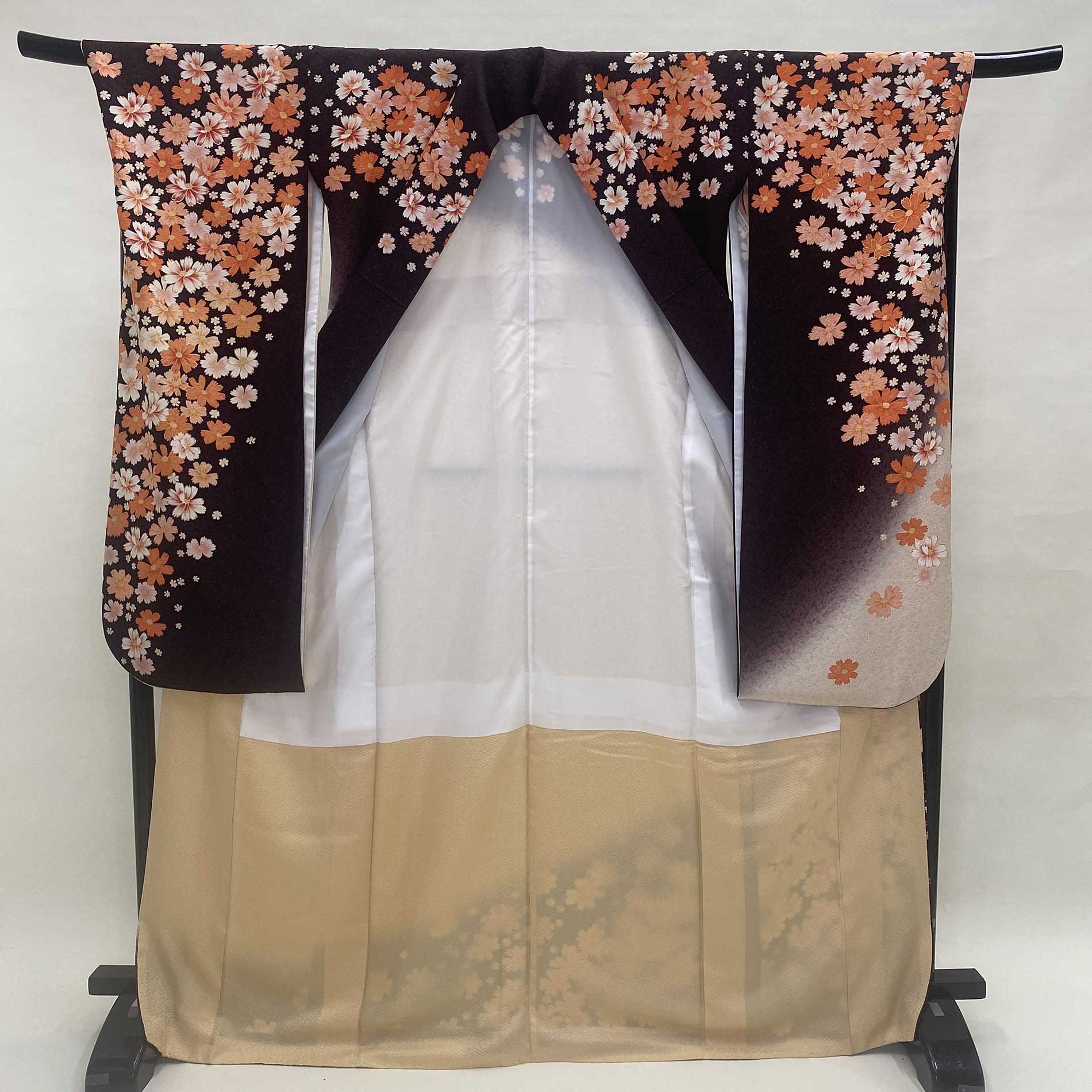 振袖 中古 ブラウン 正絹 古典 裄71cm 身丈170cm 美品 2L サイズ 成人式 5059