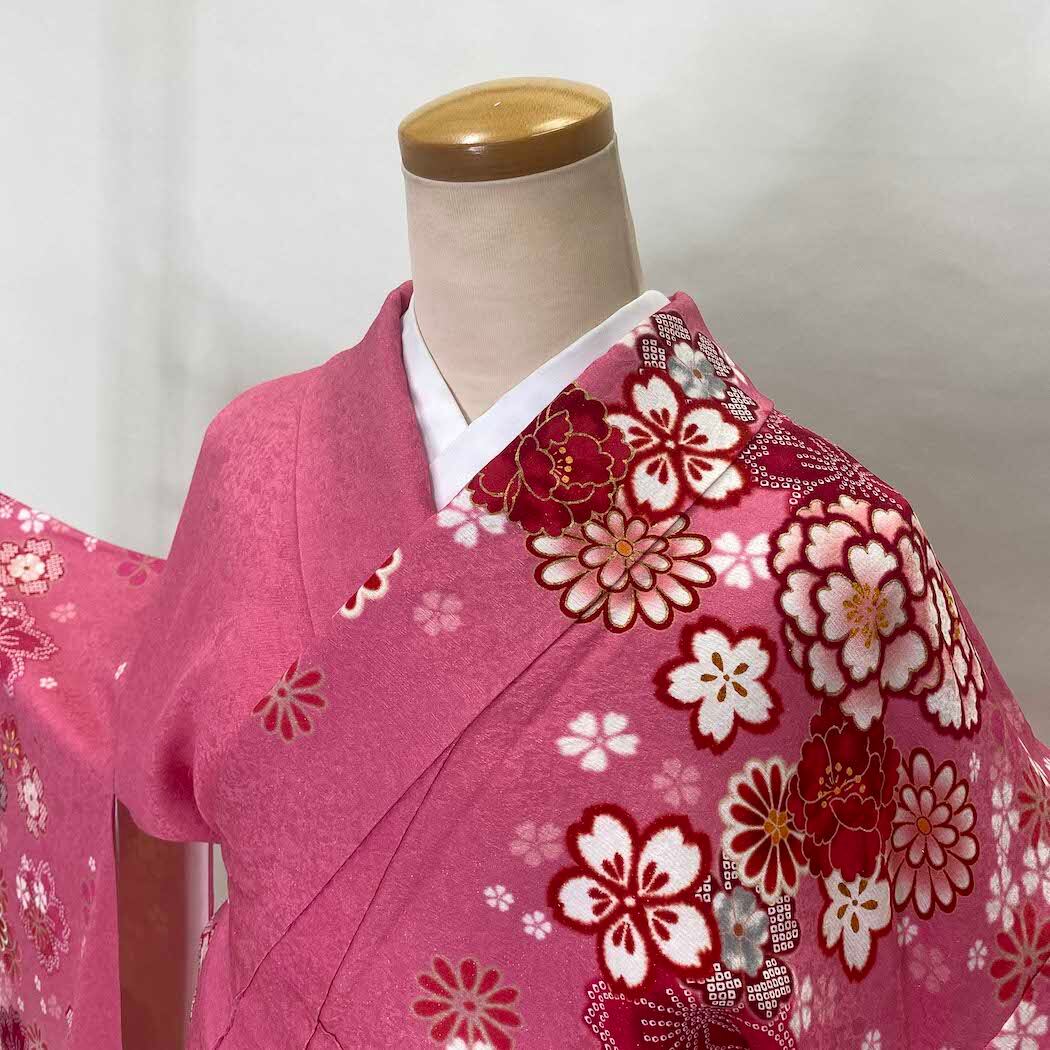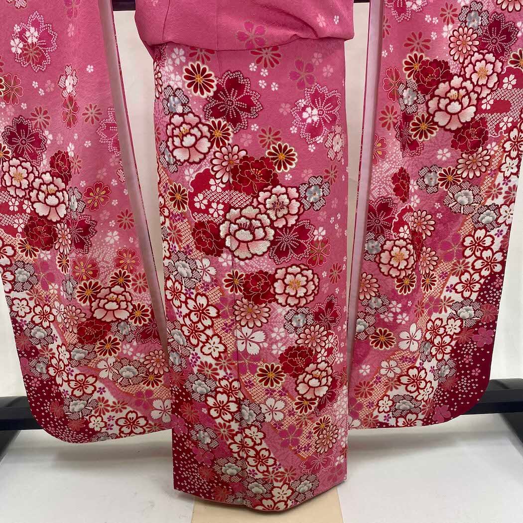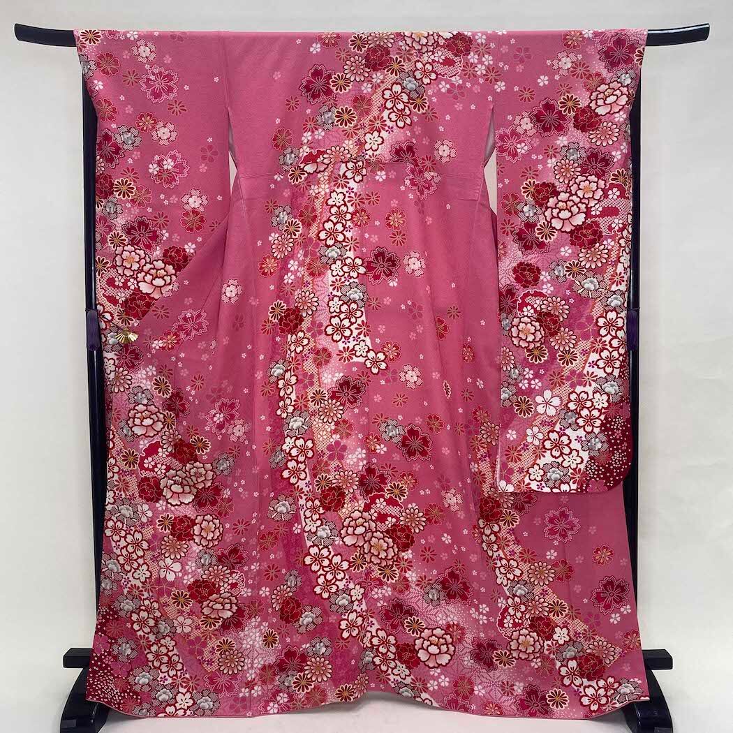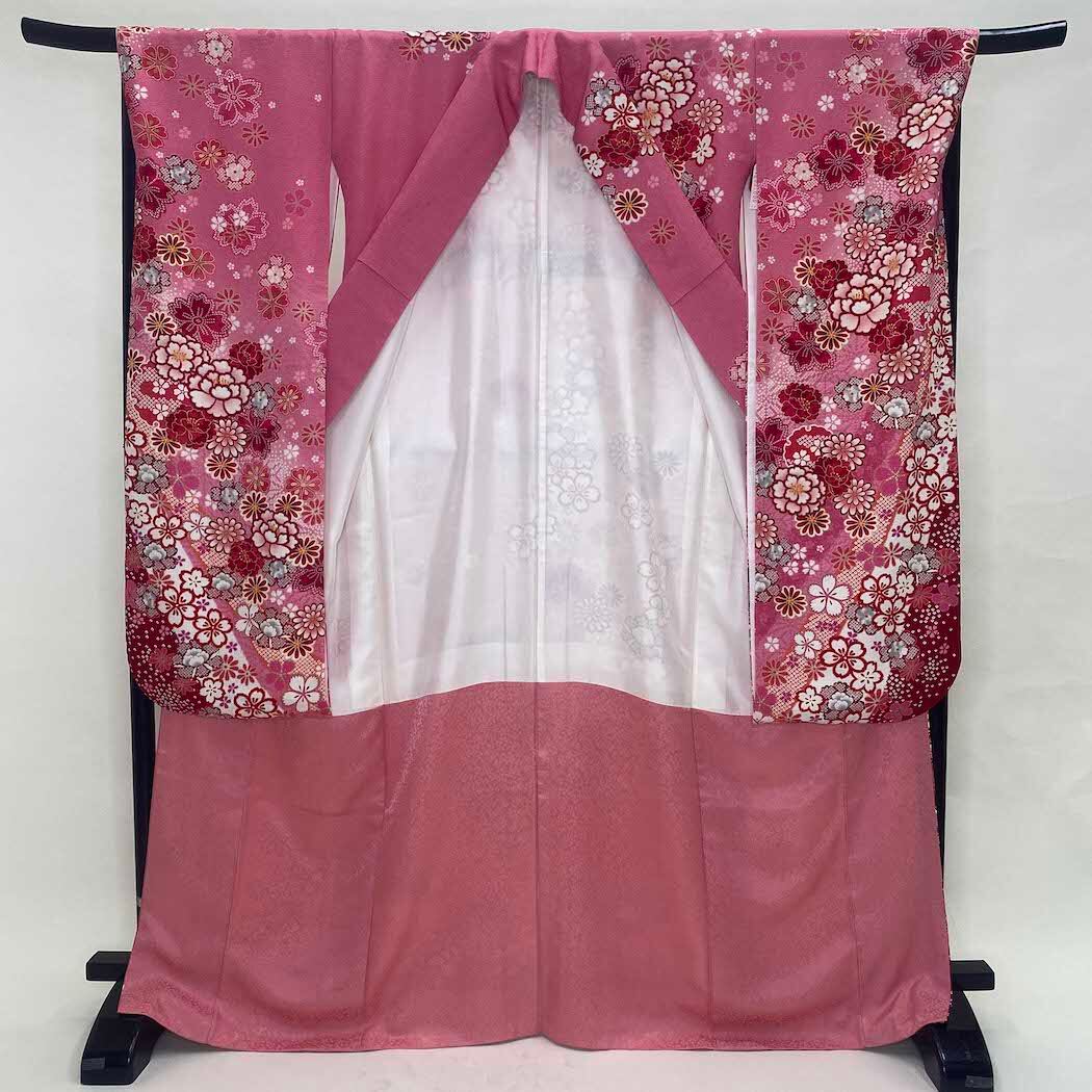 振袖 中古 ピンク 正絹 古典 裄69cm 身丈169cm 美品 L サイズ 成人式 5070