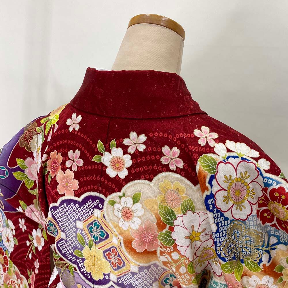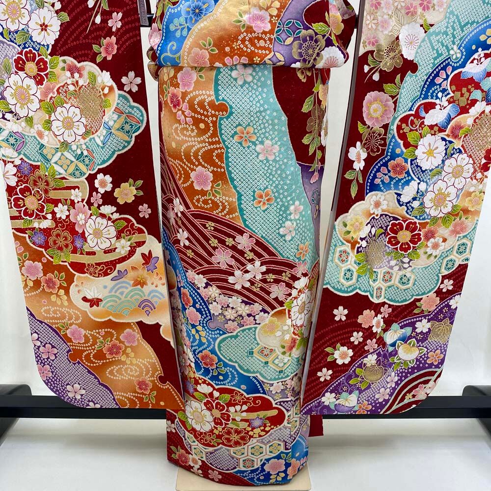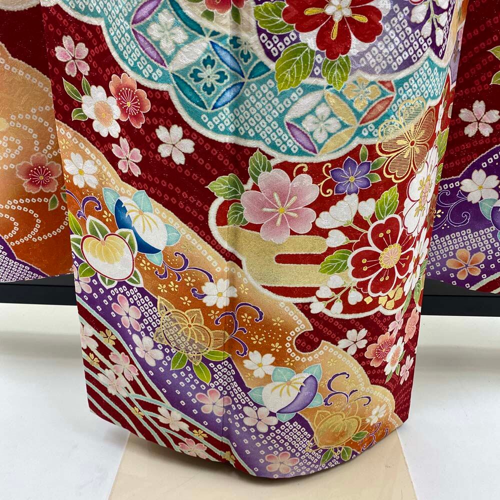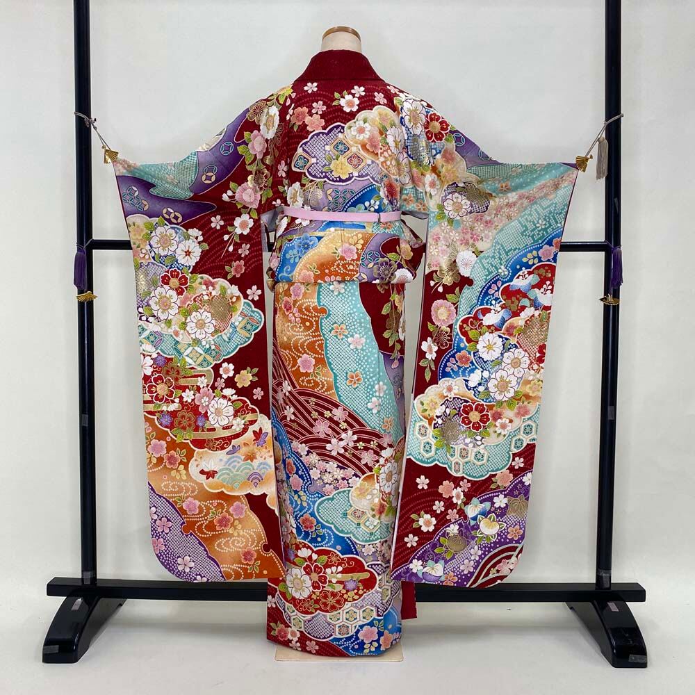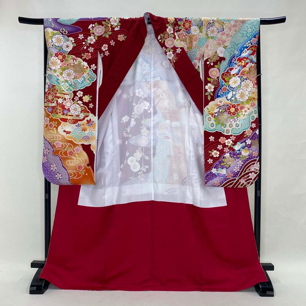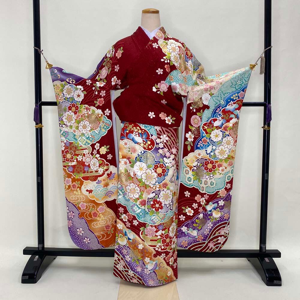 振袖 中古 赤 正絹 古典 裄68cm 身丈172cm 美品 L サイズ 成人式 5079