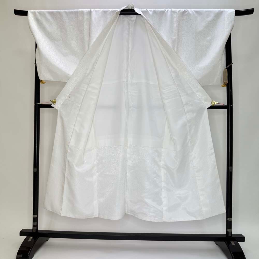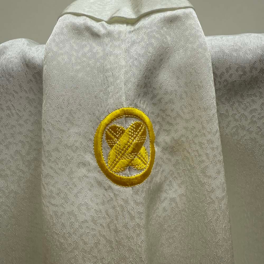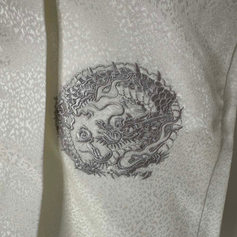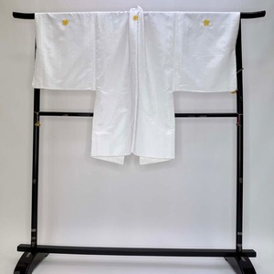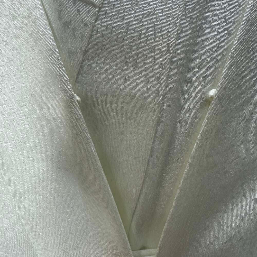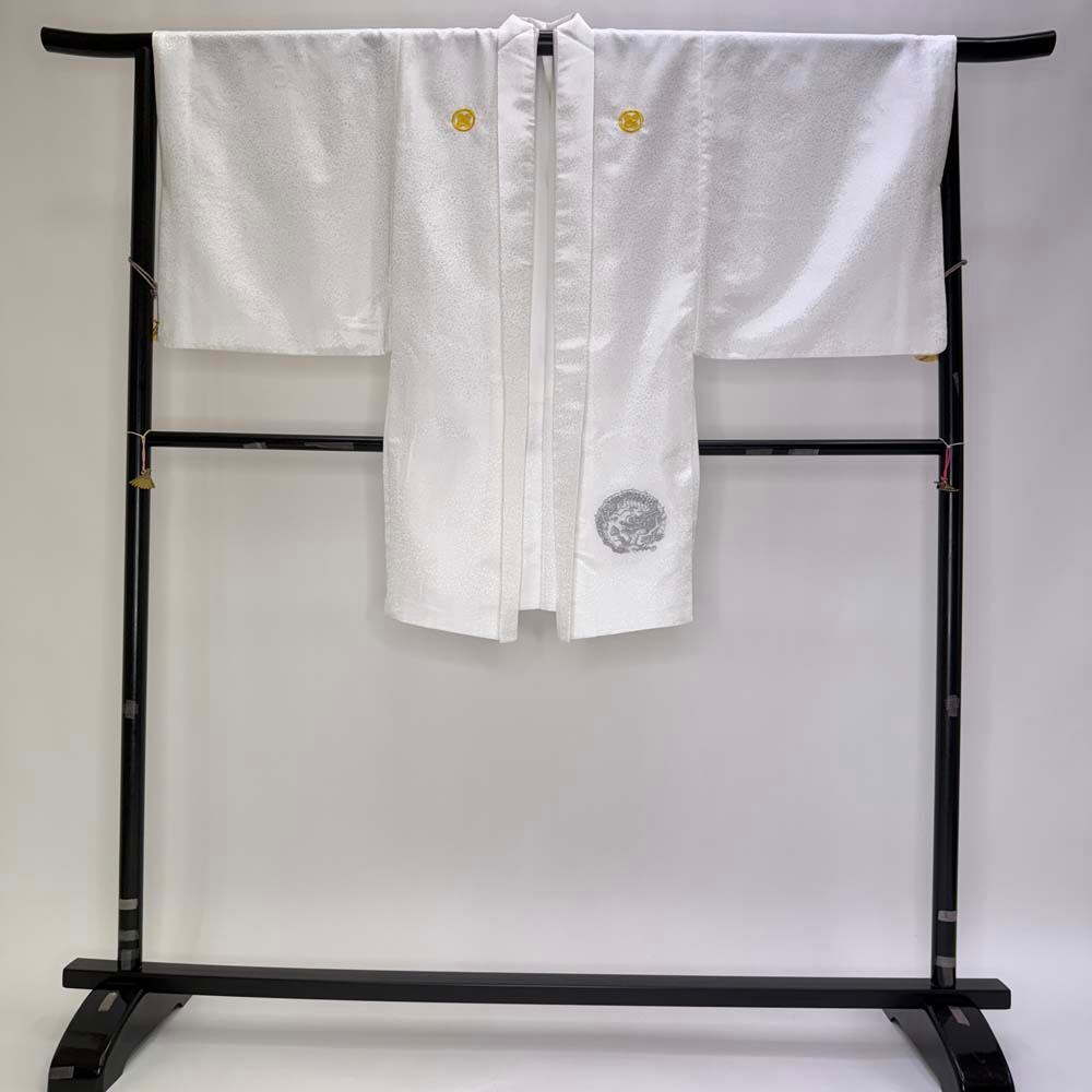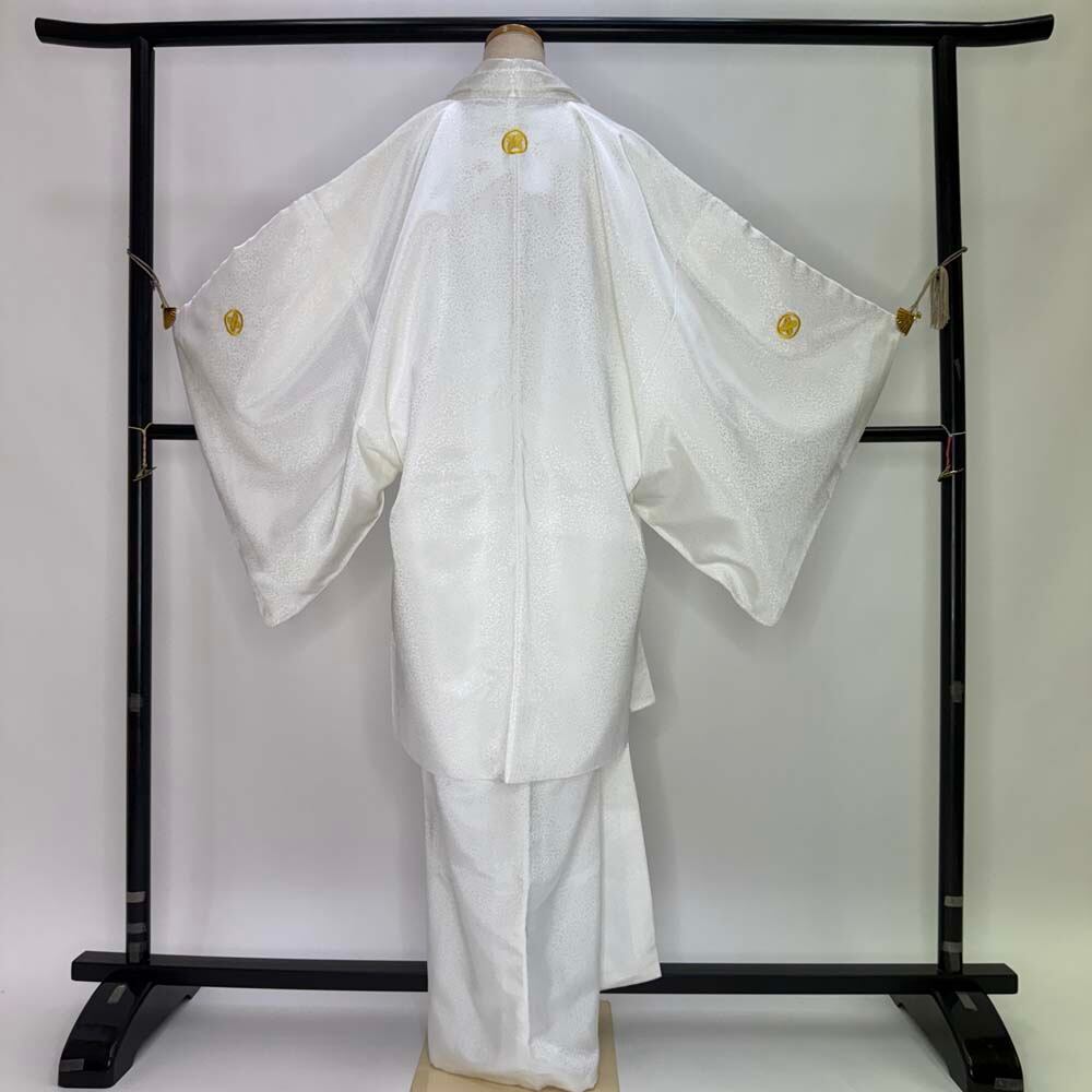 男紋付 2点セット 男着物 紋付 刺繍 ポリエステル 羽織 長着 裄73.8cm L size 白 五つ紋 中古 5037