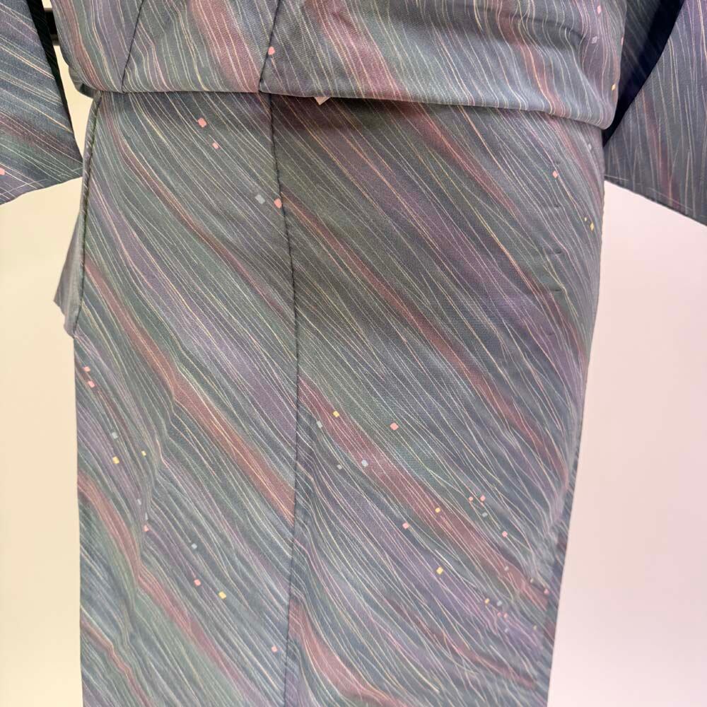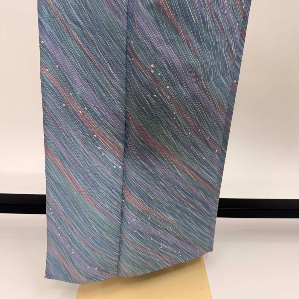 小紋 単衣 洗える着物 裄63cm 身丈148cm 紫 花柄 お洒落着 普段着 ポリエステル 美品 S サイズ 5259