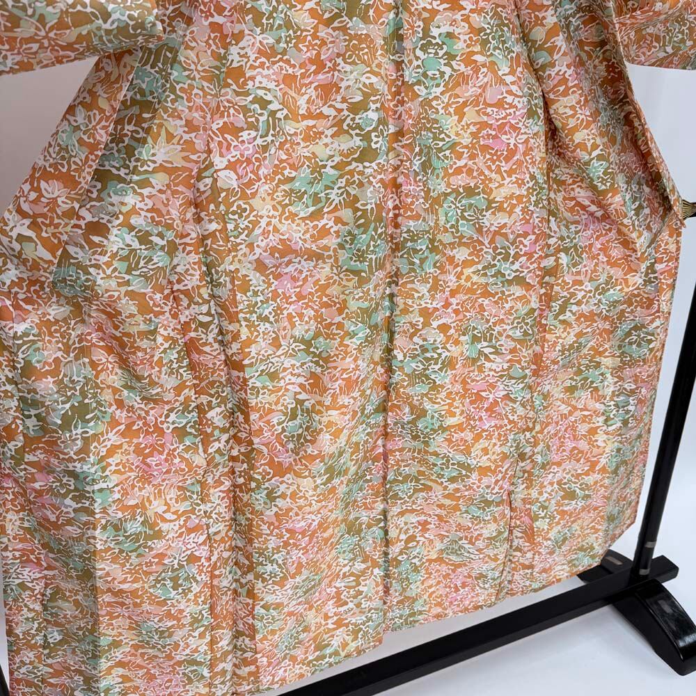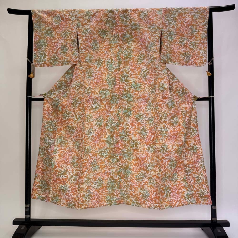 小紋 単衣 洗える着物 裄64.6cm 身丈148.2cm 茶色 花柄 お洒落着 普段着 ポリエステル 美品 M サイズ 5269