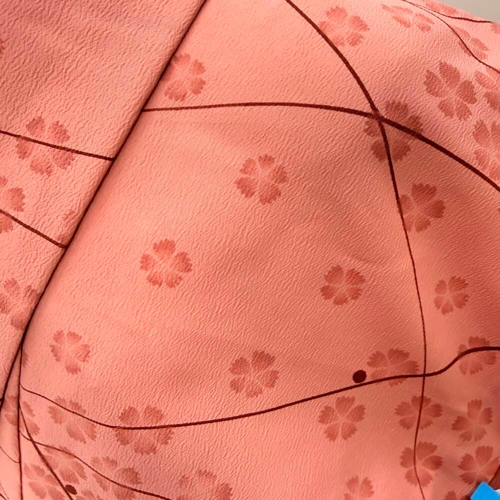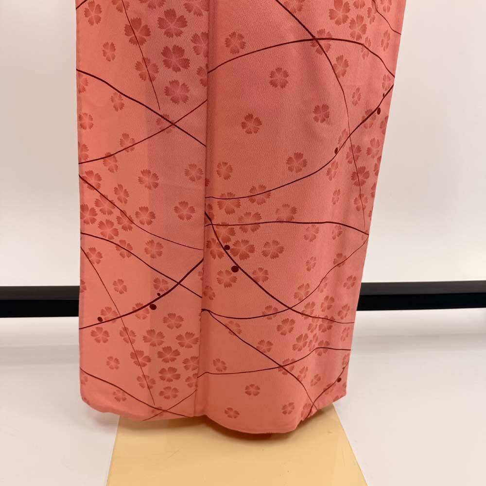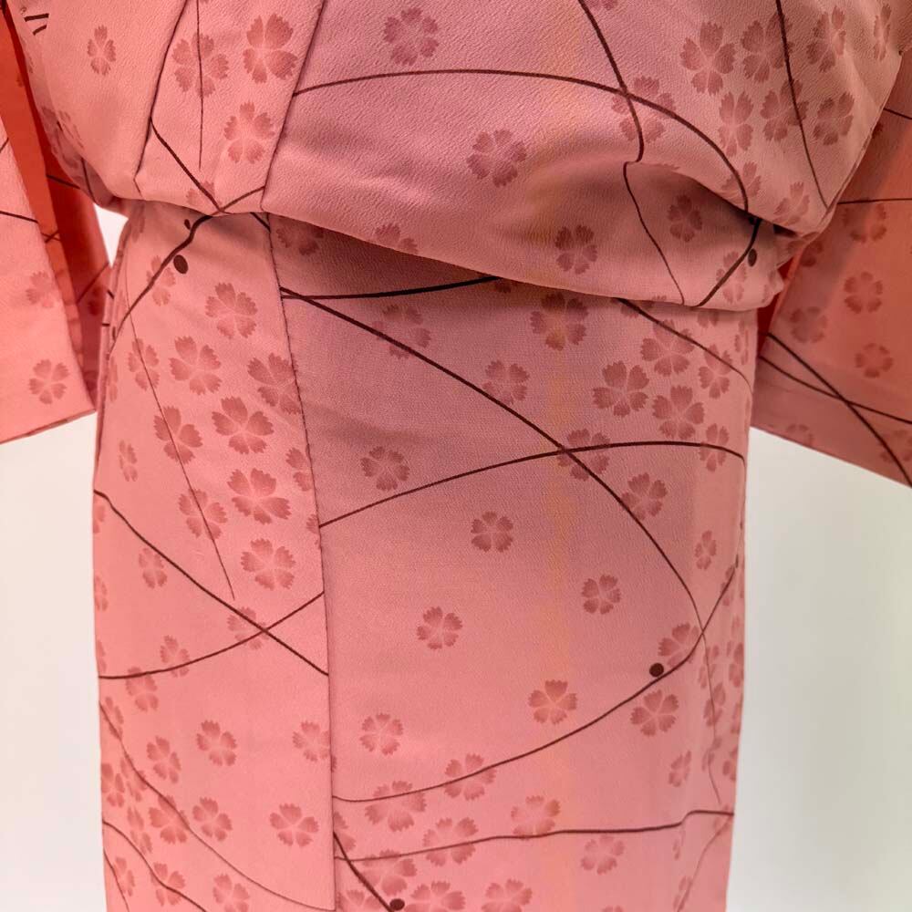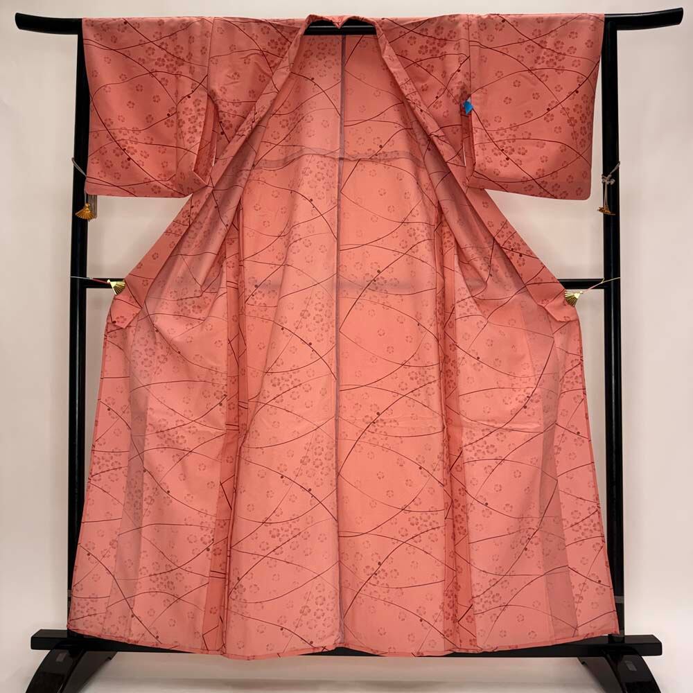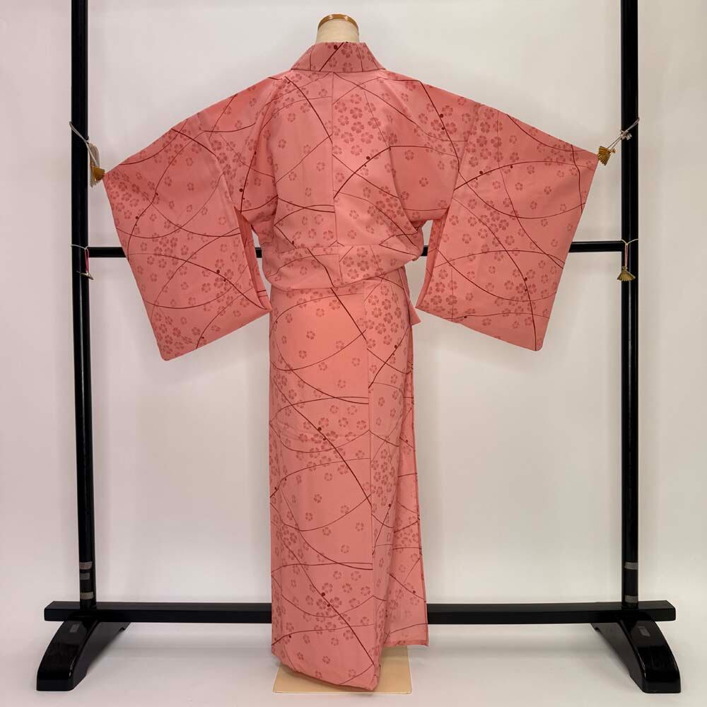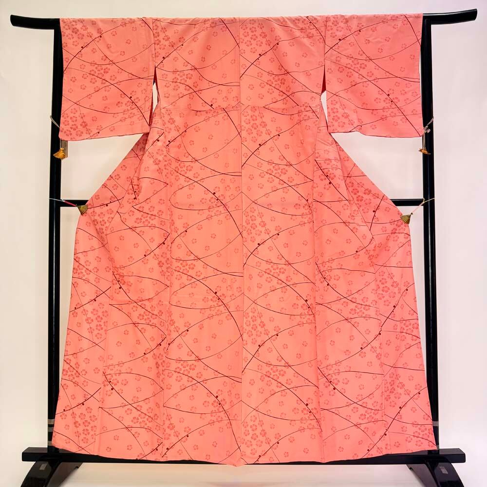 小紋 単衣 洗える着物 裄64.6cm 身丈158cm ピンク 花柄 お洒落着 普段着 ポリエステル 美品 M サイズ 5270