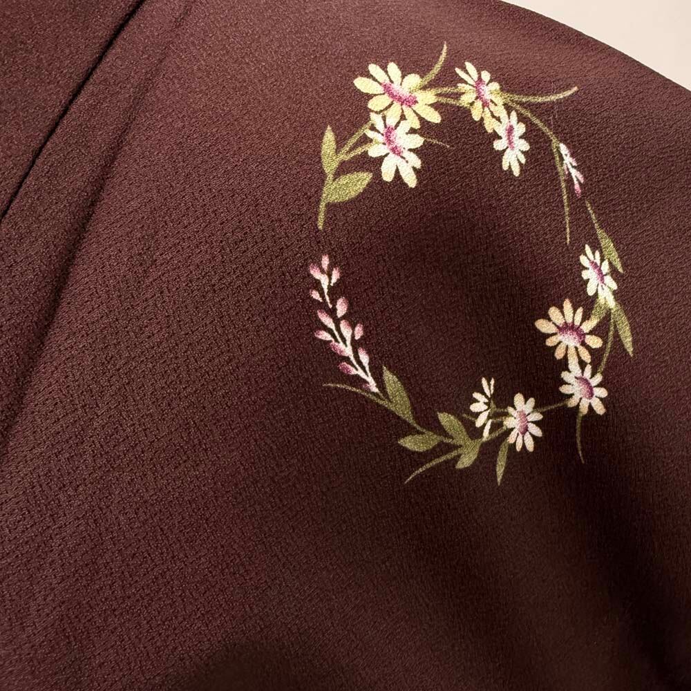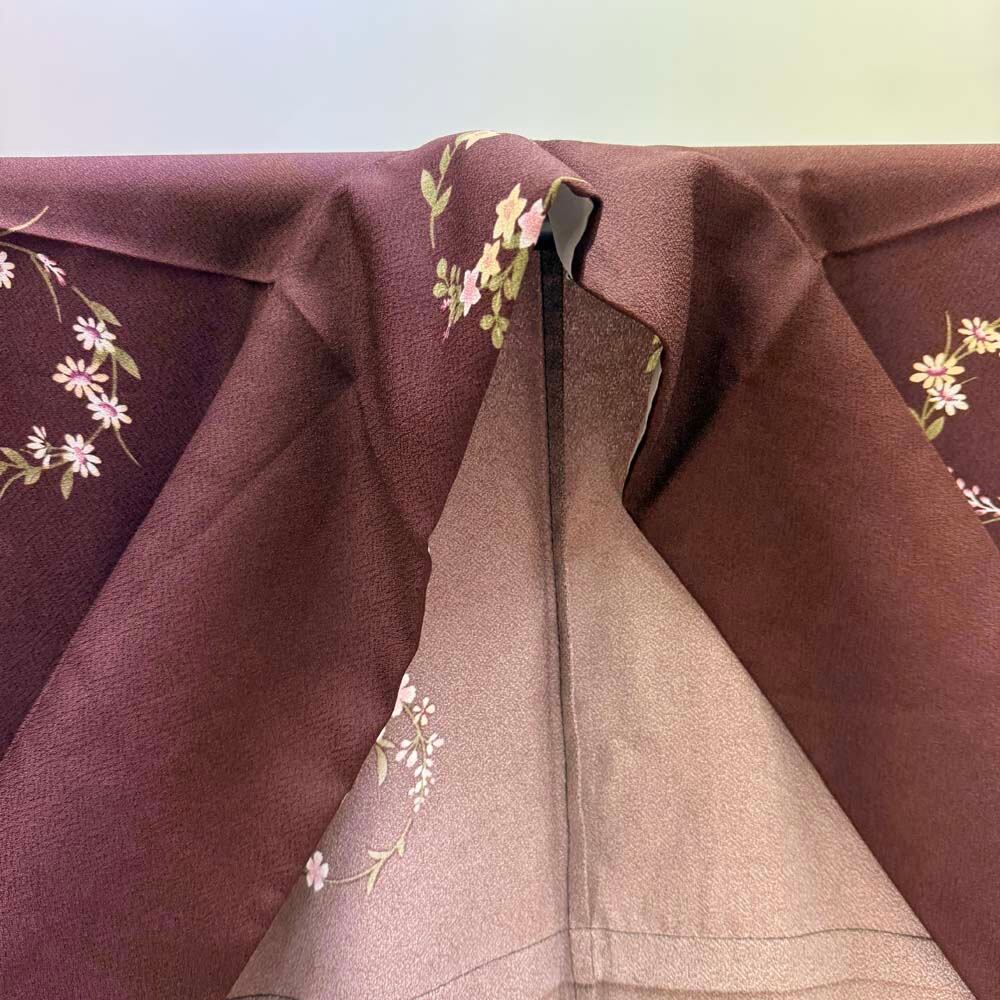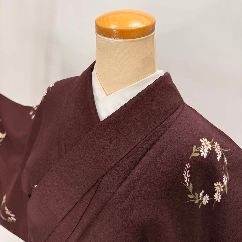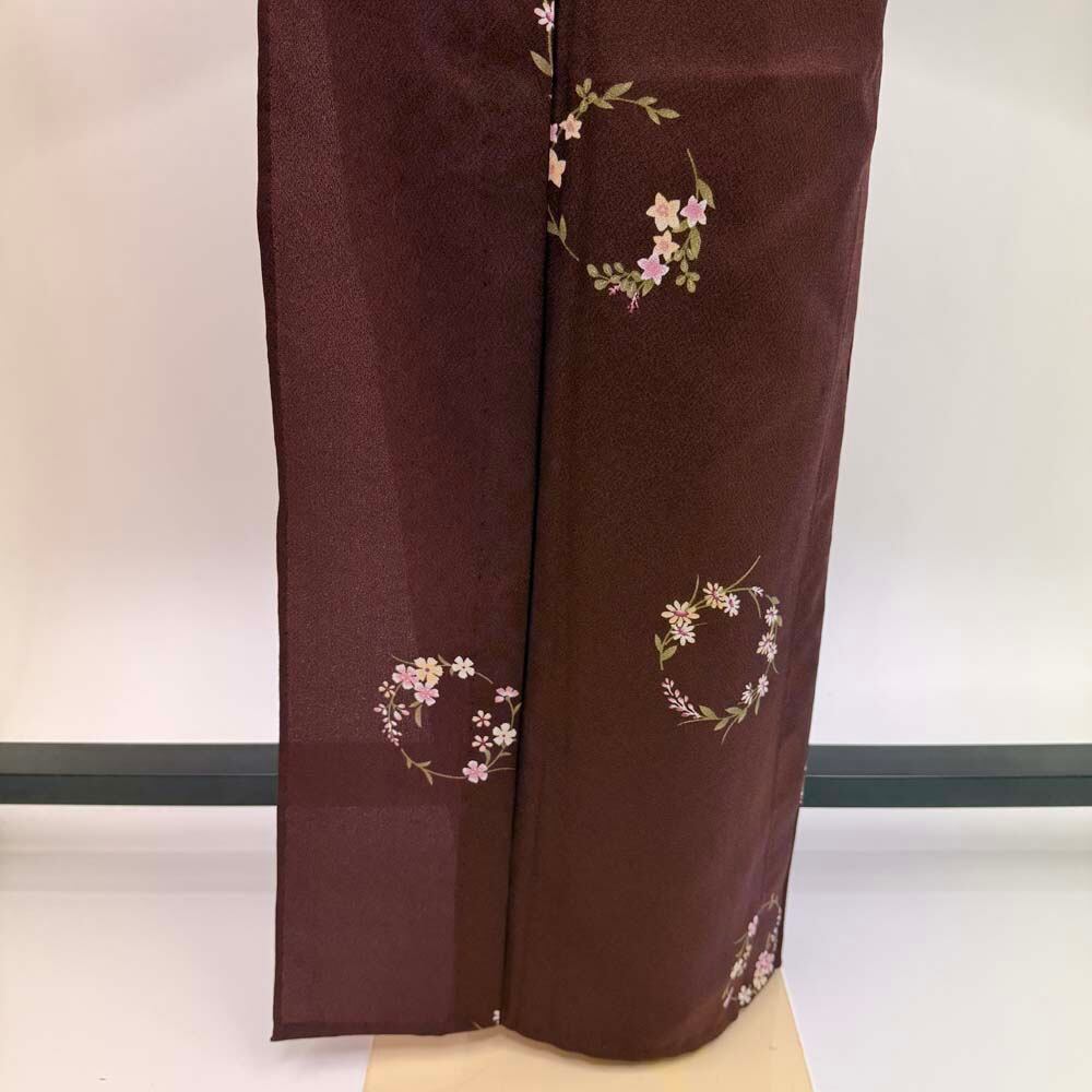 小紋 単衣 洗える着物 裄66.5cm 身丈163.5cm 茶色 花柄 お洒落着 普段着 ポリエステル 美品 M サイズ 5283