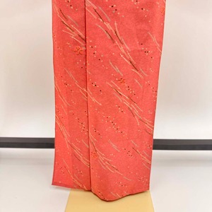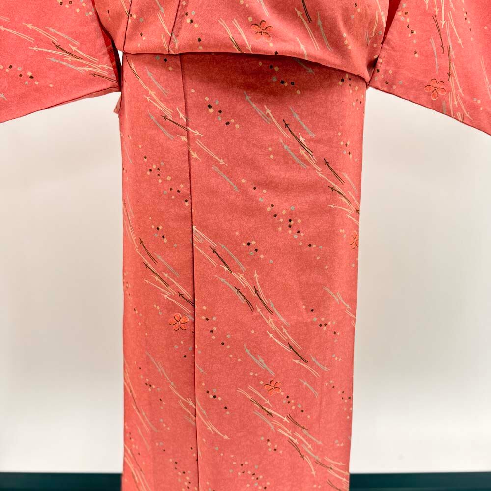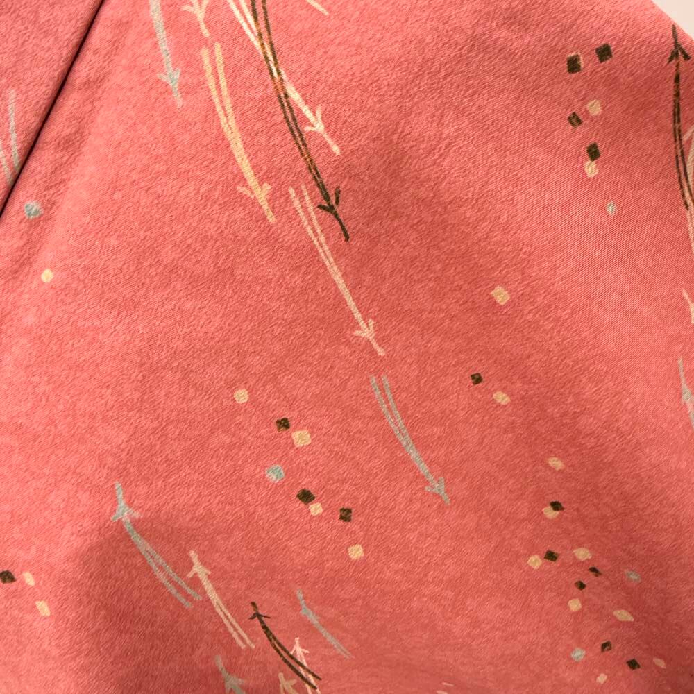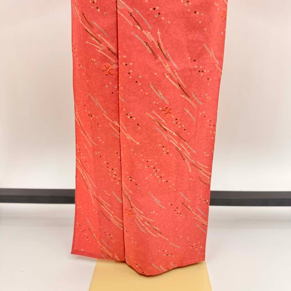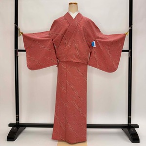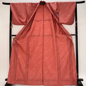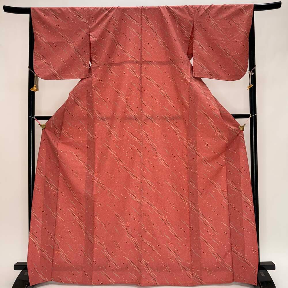 小紋 単衣 洗える着物 裄67cm 身丈169.5cm ピンク 花柄 お洒落着 普段着 ポリエステル 美品 L サイズ 5284