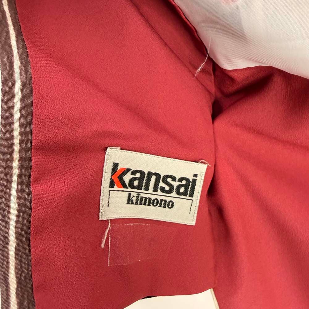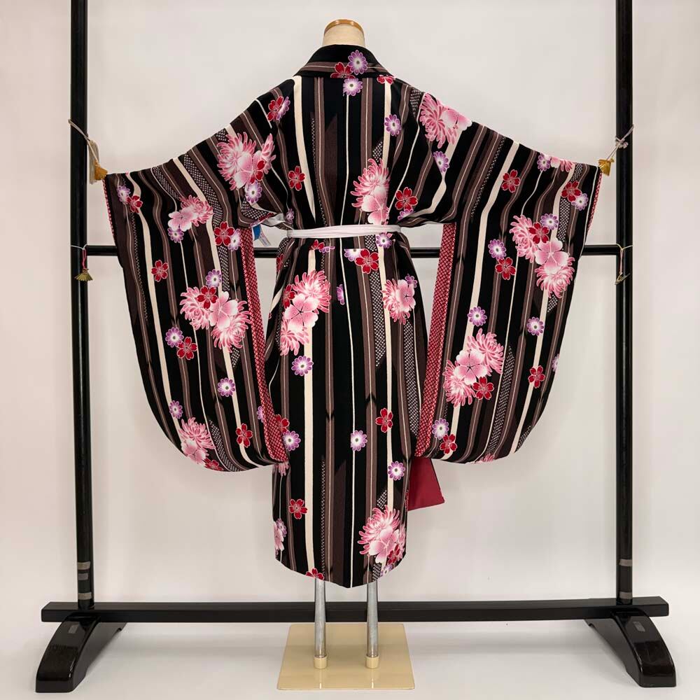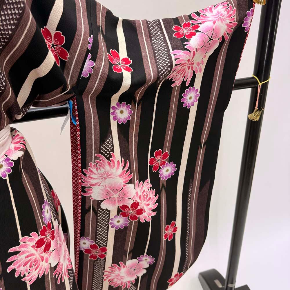 二尺袖 単品 卒業式着物 kansai 黒 ブラウン 裄68cm Lサイズ 袴用着物 化繊 中古 5295