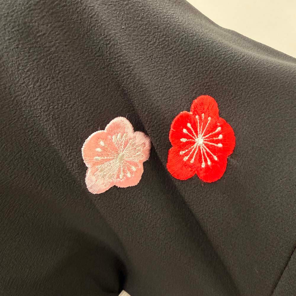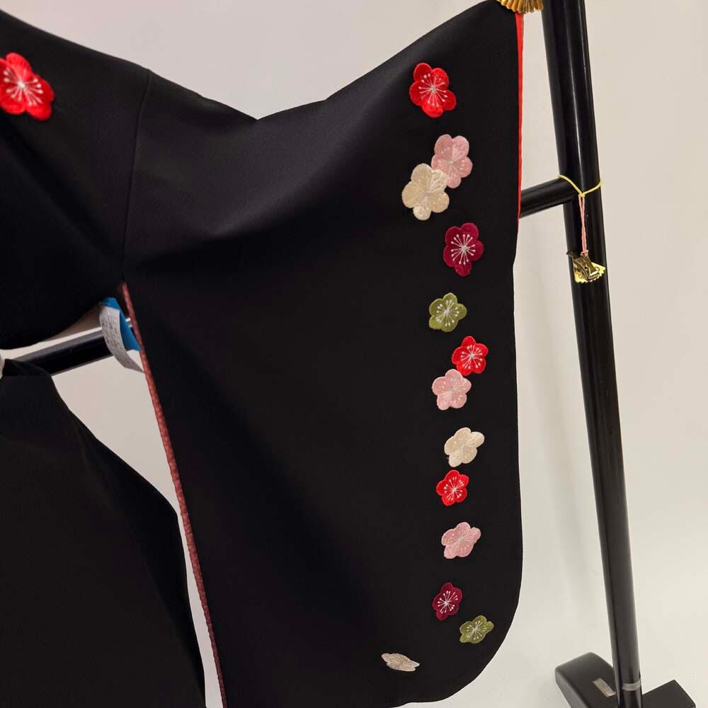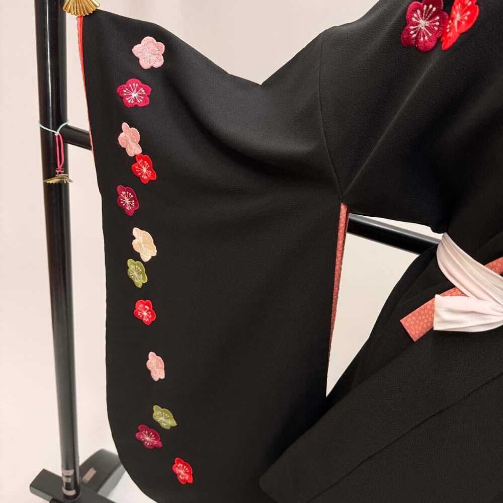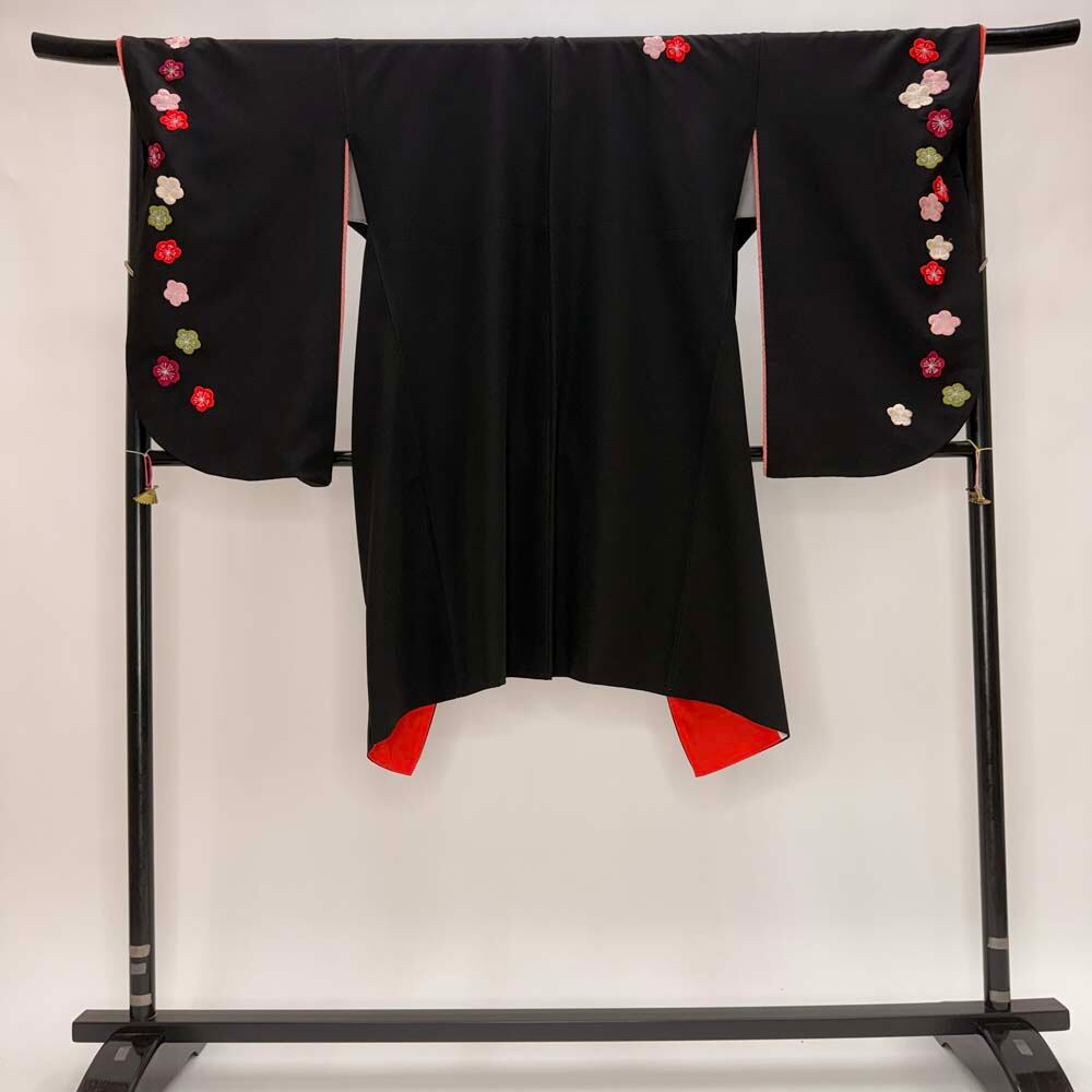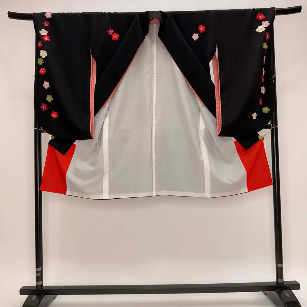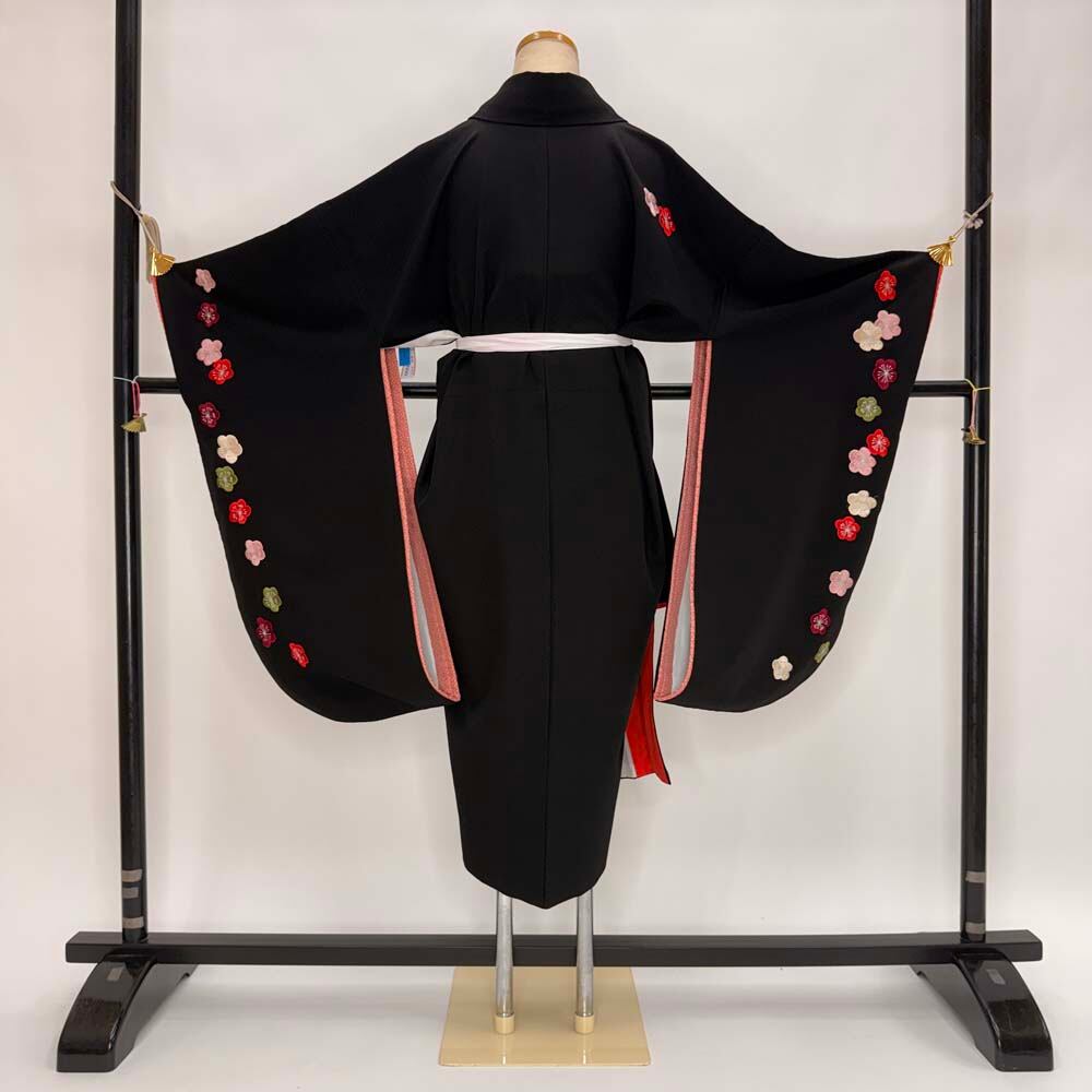 二尺袖 単品 卒業式着物 黒 刺繍 kansai 裄68.5cm Lサイズ 袴用着物 化繊 中古 5299