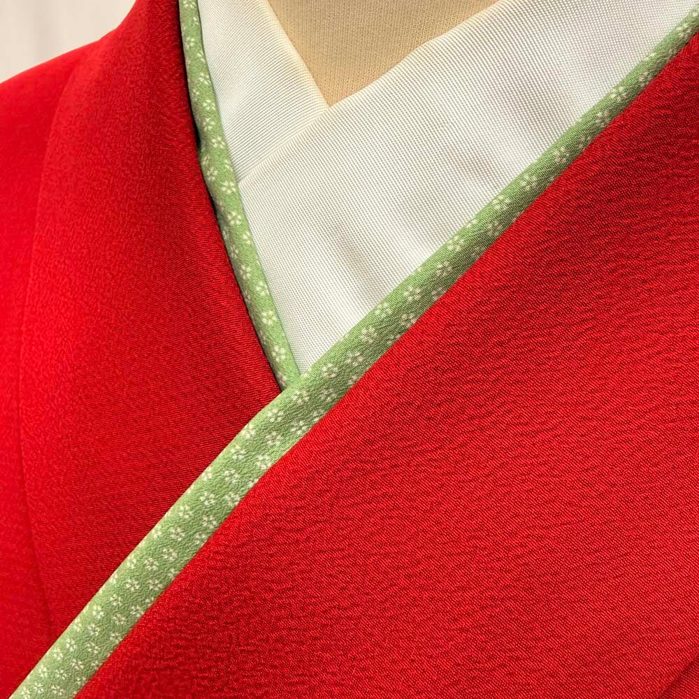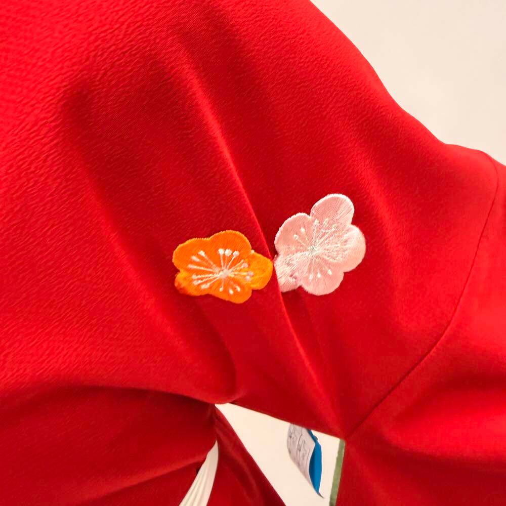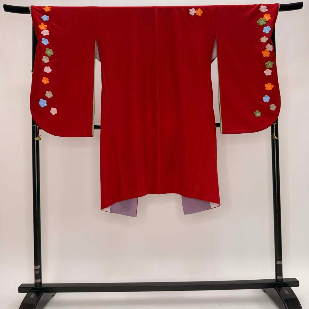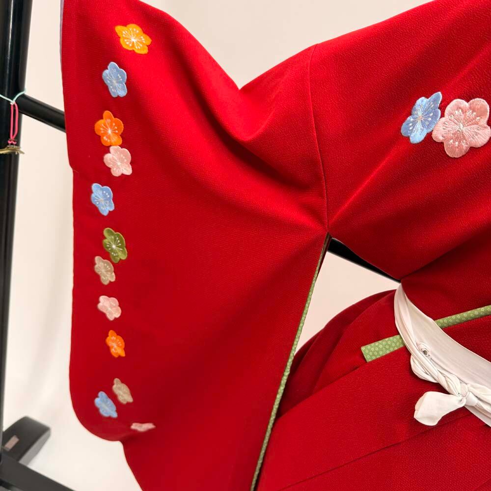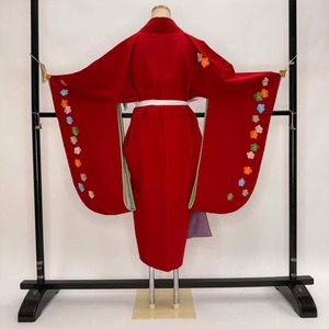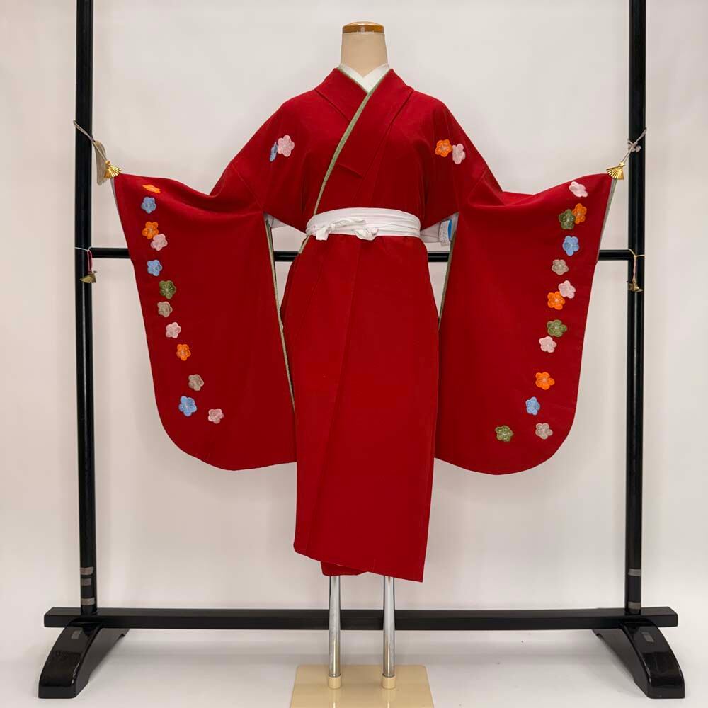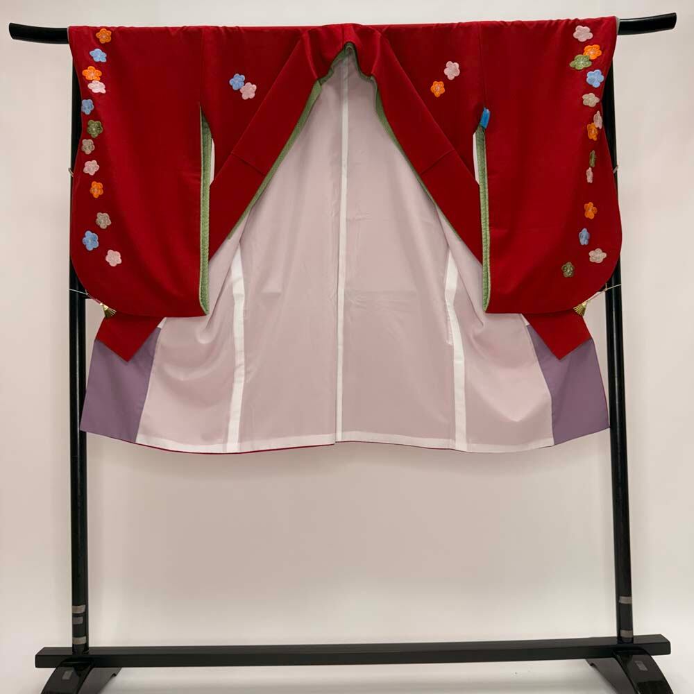 二尺袖 単品 卒業式着物 赤 刺繍 kansai 裄69cm Lサイズ 袴用着物 化繊 中古 5300