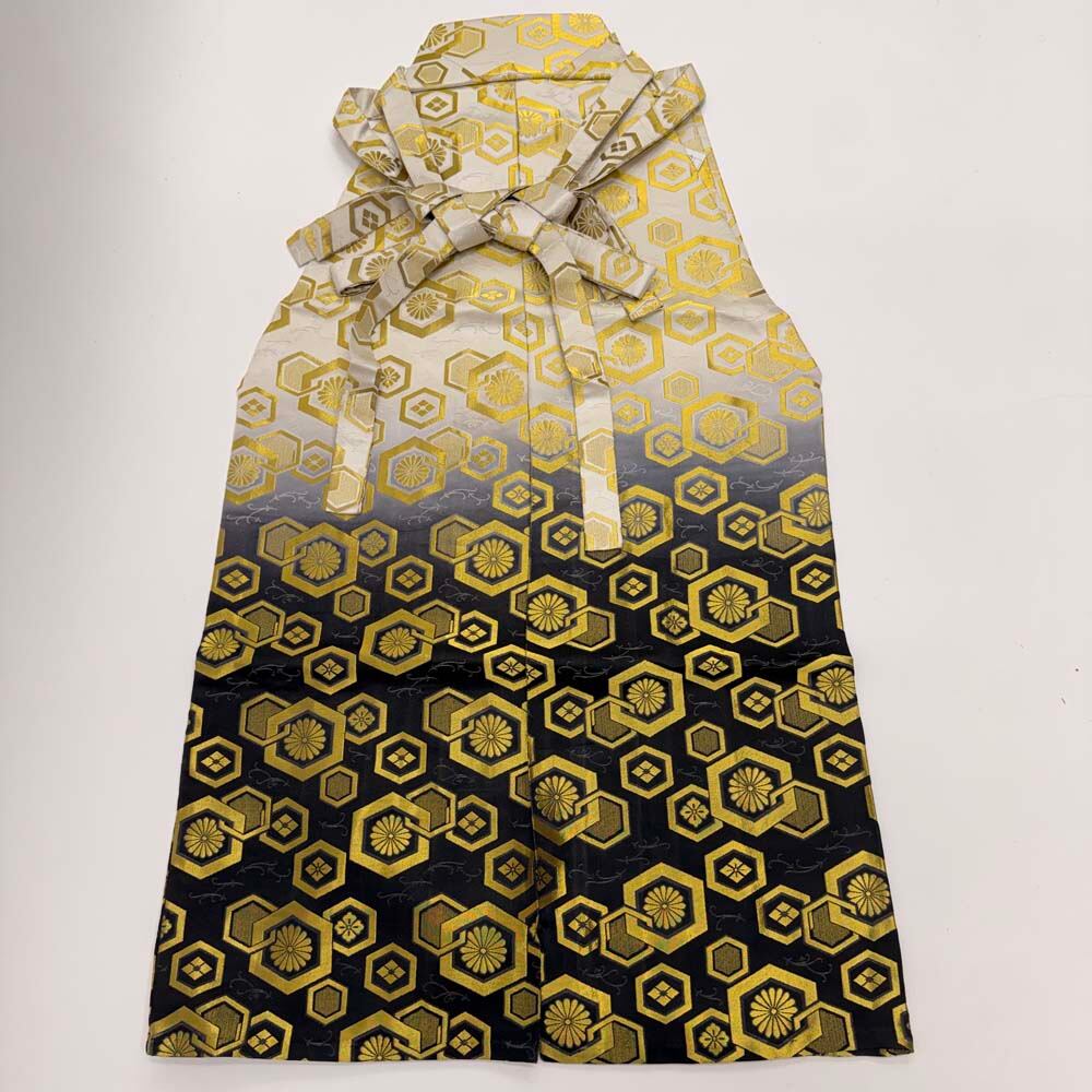 袴 行灯袴 男袴 L size 紐下丈88cm 男性用袴 黒 白 金 成人式袴 中古 5310