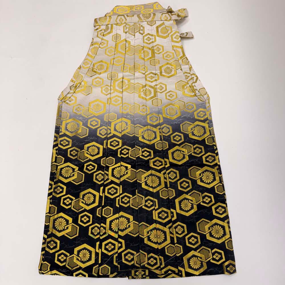 袴 行灯袴 男袴 2L size 紐下丈91.5cm 男性用袴 黒 白 金 成人式袴 中古 5311
