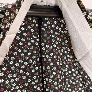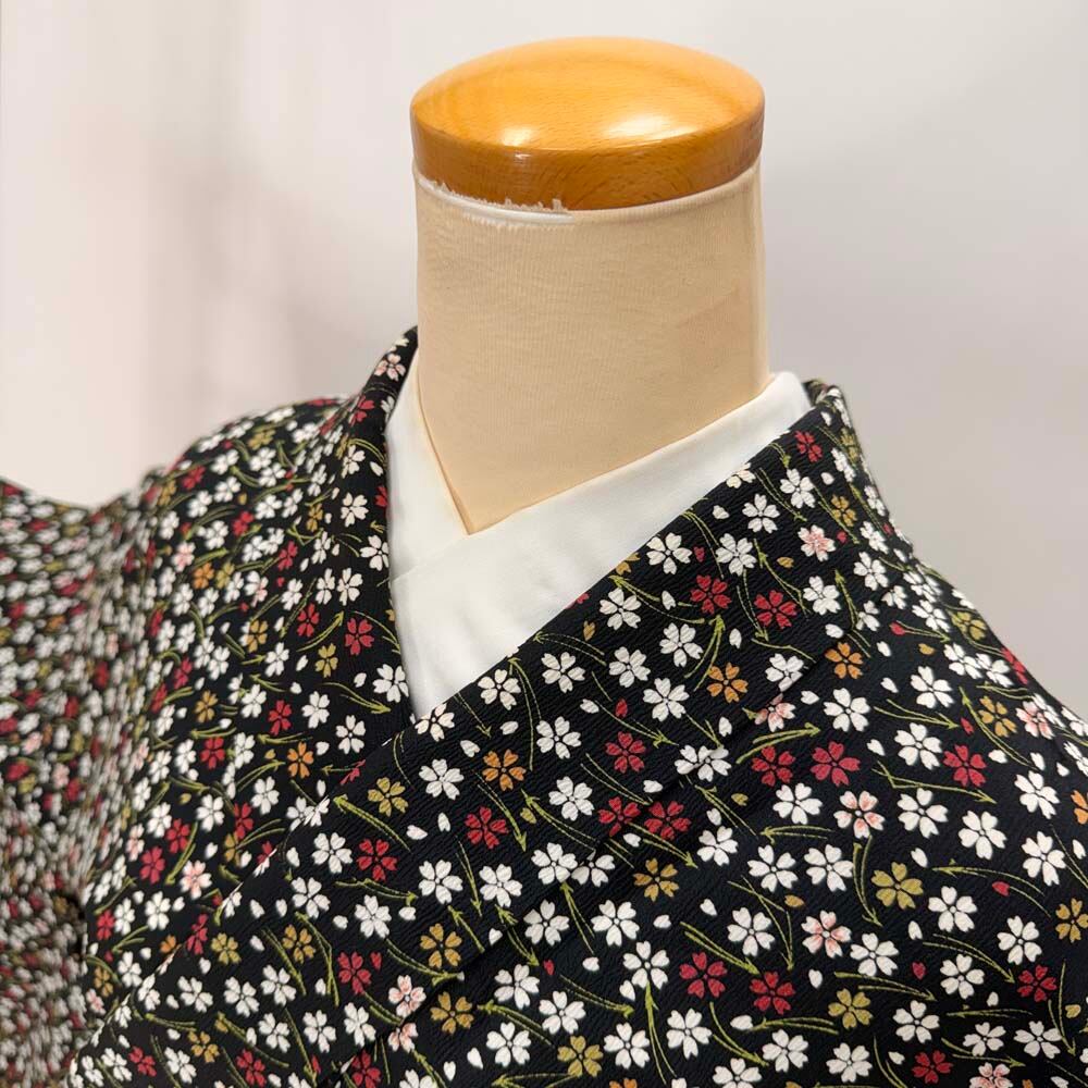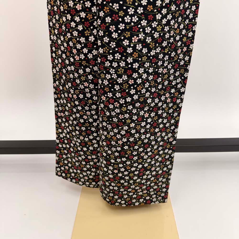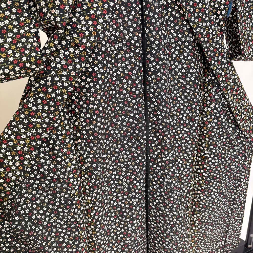 小紋 単衣 洗える着物 裄65.7cm 身丈155.5cm 黒 お洒落着 普段着 ポリエステル 美品 M サイズ 5326