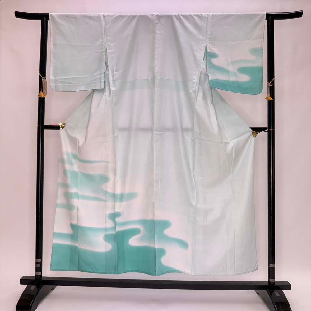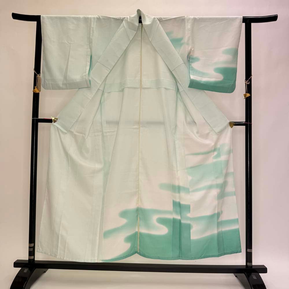 訪問着 付け下げ 単衣 洗える着物 礼装 ポリエステル 裄62.7cm 身丈153cm S サイズ 白 緑 5360