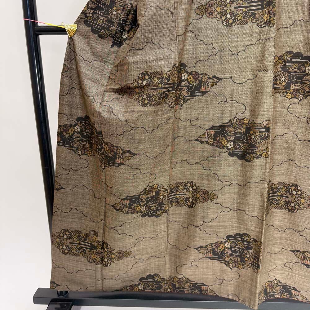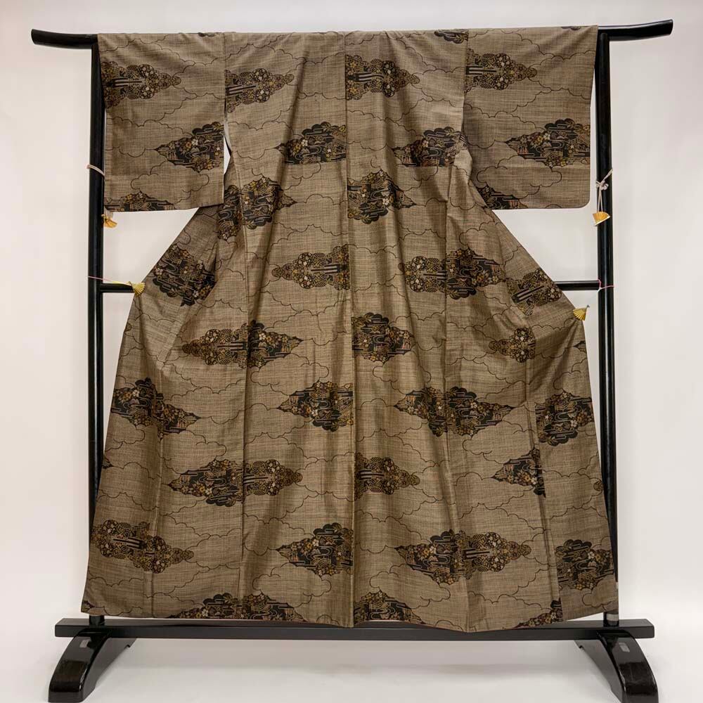 大島紬 9マルキ 泥染大島 幅広 大きい 本場大島紬 お洒落着 普段着 正絹 裄65cm 身丈157.5cm 美品 リサイクル着物 M サイズ 5390