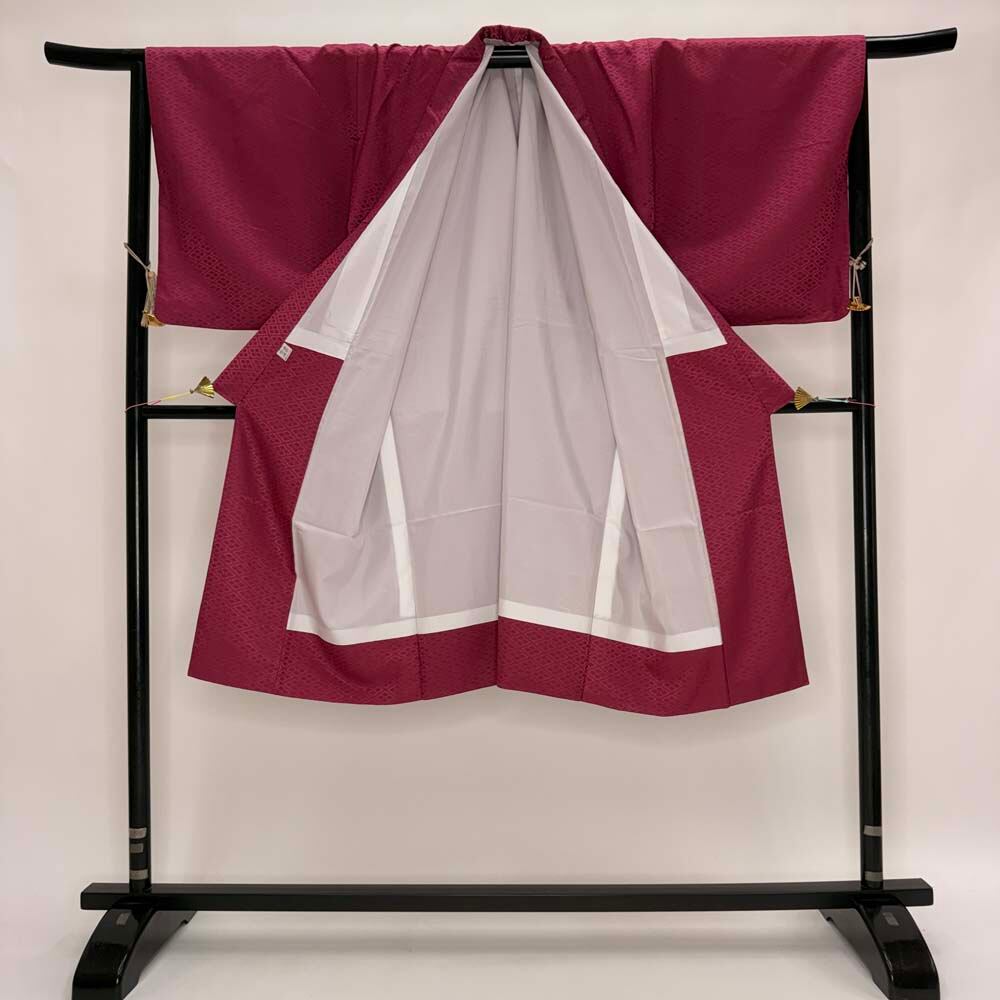男紋付 男着物 紋付 ポリエステル 羽織 長着 裄77cm 3L size エンジ 白 五つ紋 中古 成人式 舞台衣装 5424