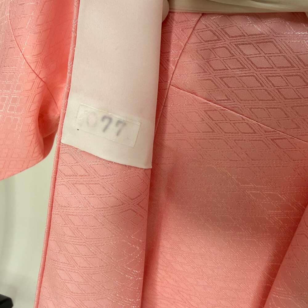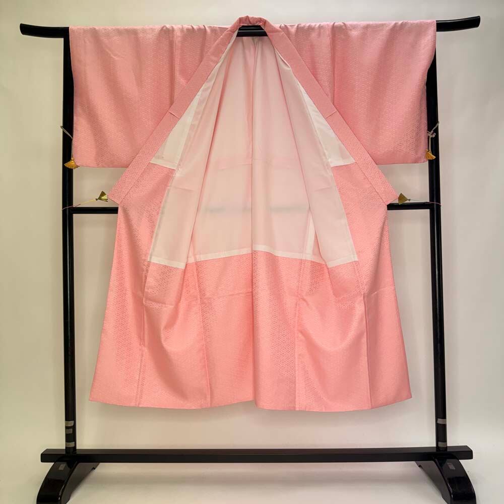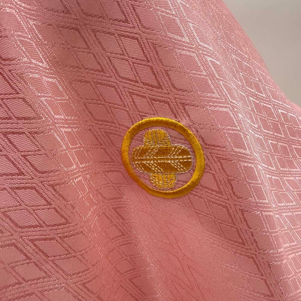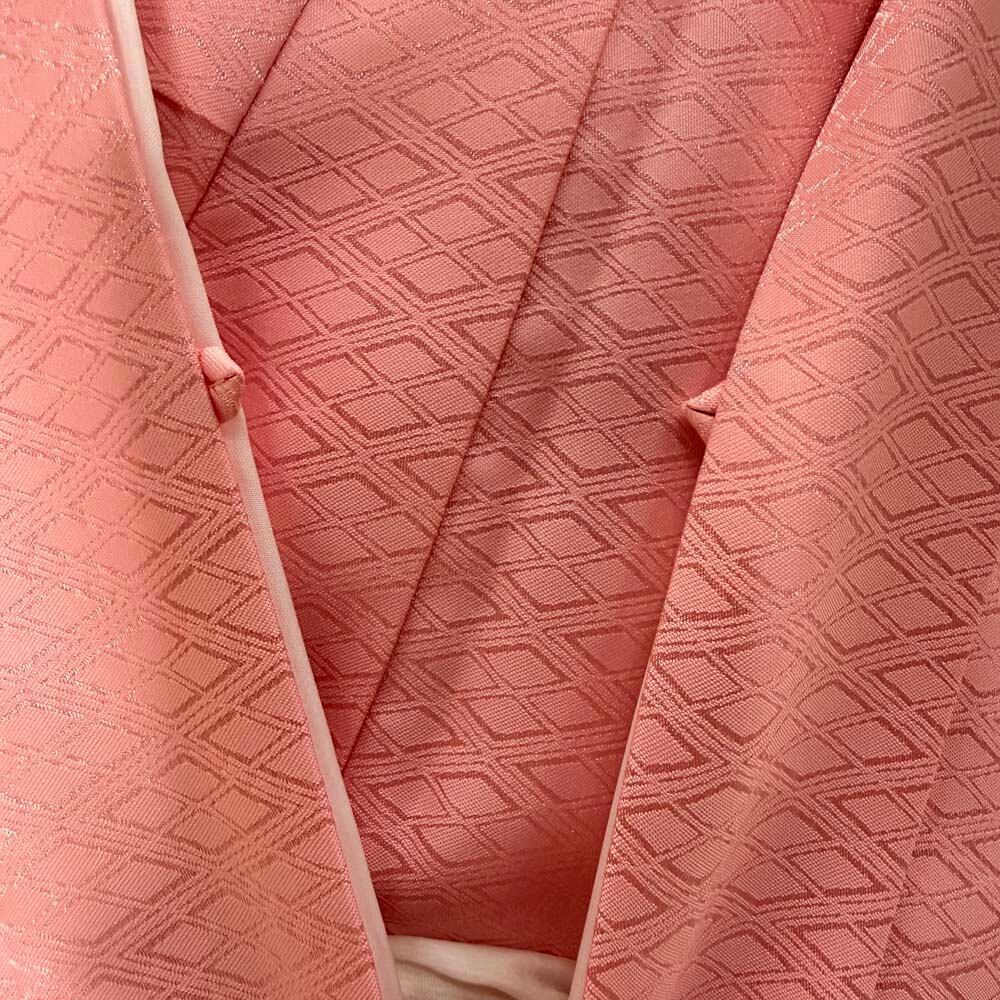 男紋付 男着物 紋付 ポリエステル 羽織 長着 裄73.5cm L size ピンク 五つ紋 中古 成人式 舞台衣装 5427