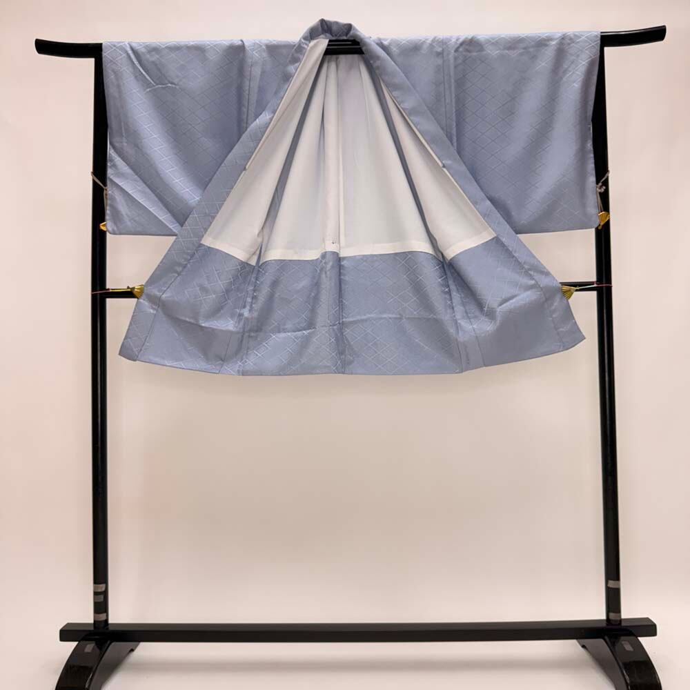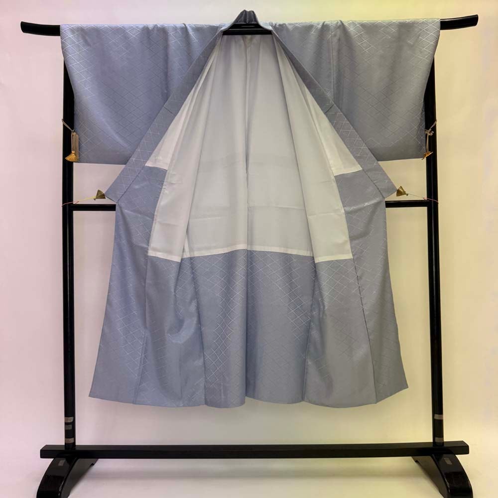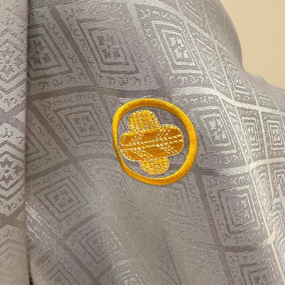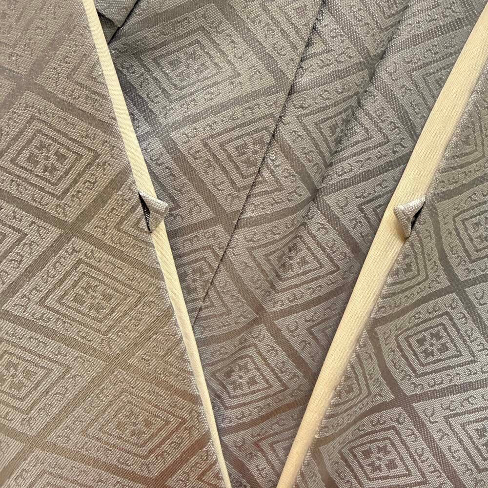 男紋付 男着物 紋付 ポリエステル 羽織 長着 裄72.5cm L size グレー 五つ紋 中古 成人式 舞台衣装 5434