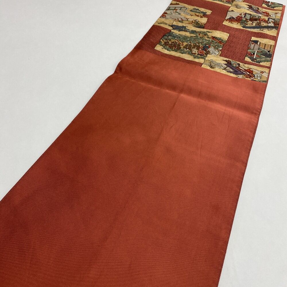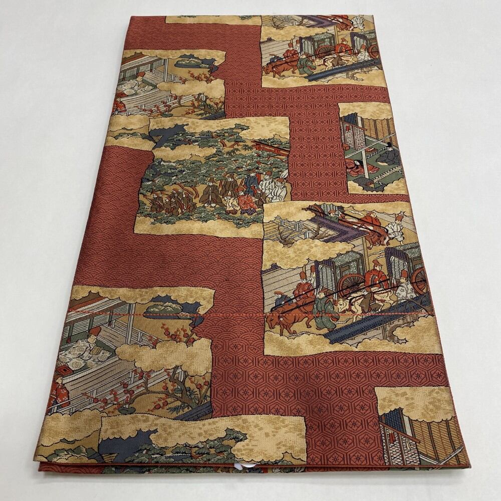 中古 洒落袋帯 正絹 季節 行事 六通柄 レッド Bランク 428cm 5448