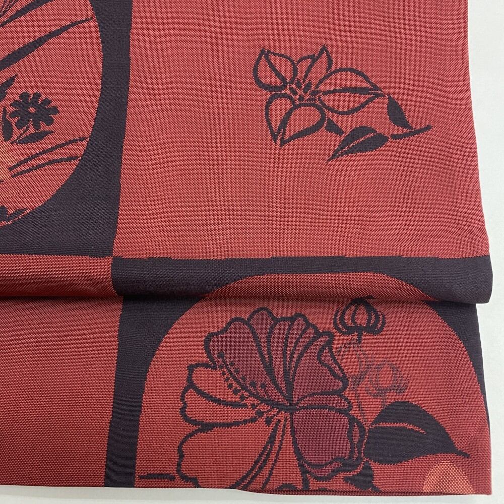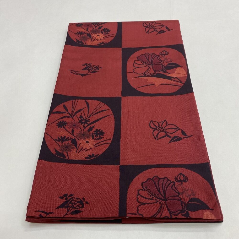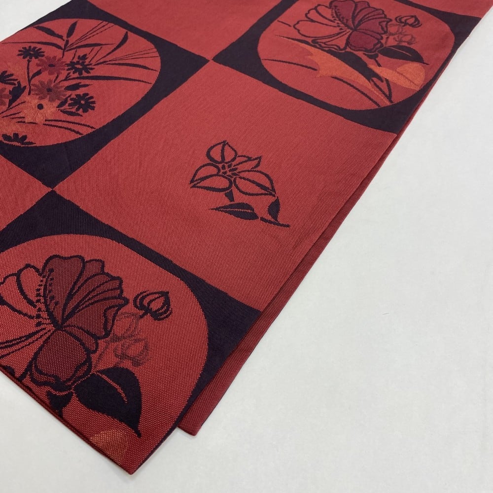 中古 洒落袋帯 正絹 草花 六通柄 レッド Bランク 429cm 5459