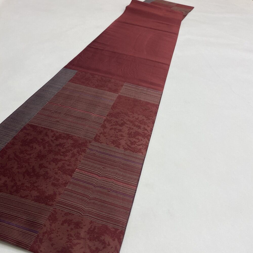 中古 洒落袋帯 正絹 連続模様 六通柄 レッド Bランク 431cm 5491