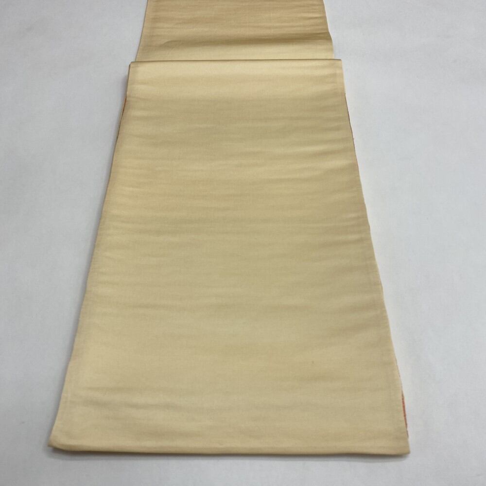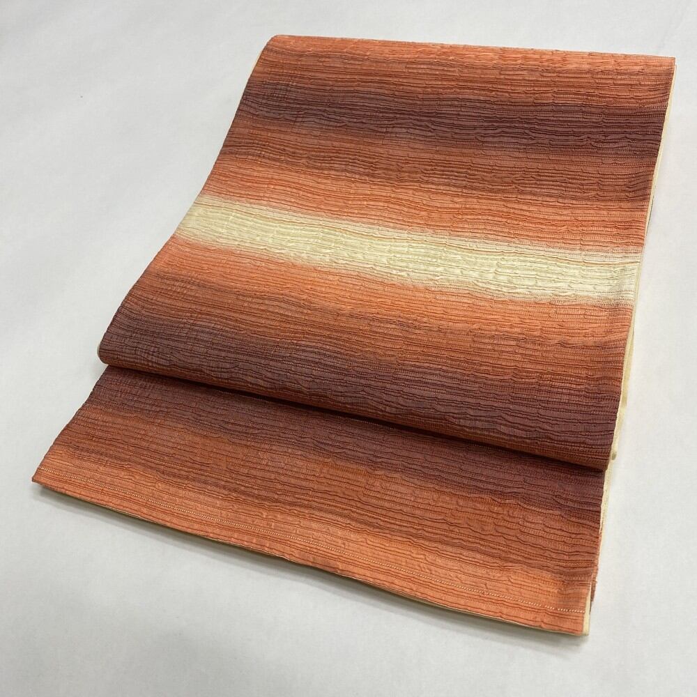 中古 洒落袋帯 正絹 連続模様 六通柄 オレンジ Cランク 419cm 5496