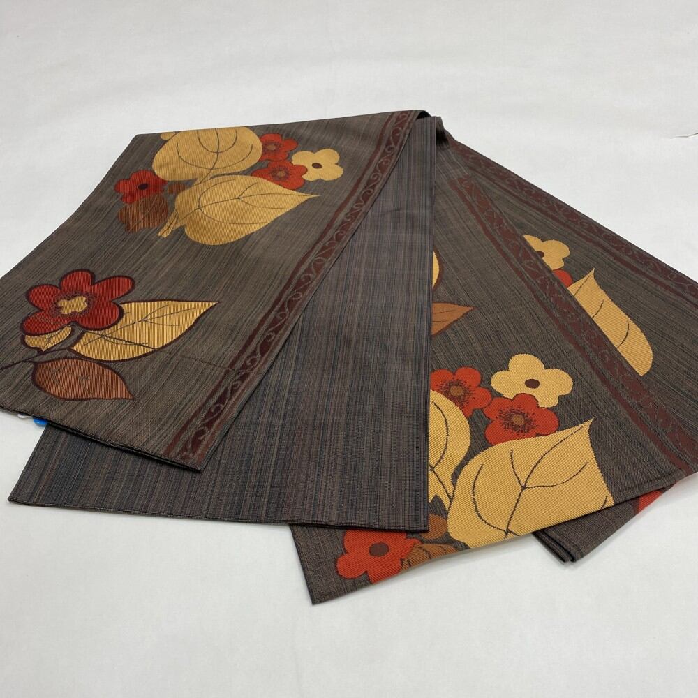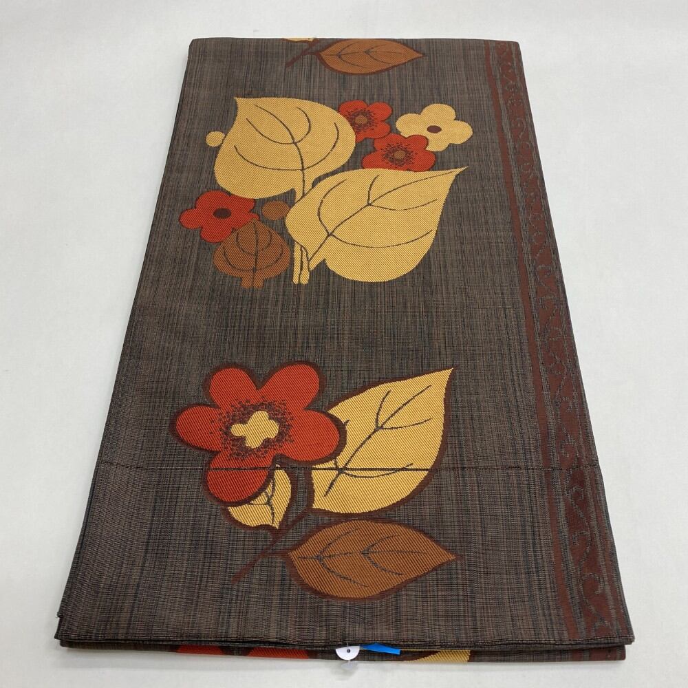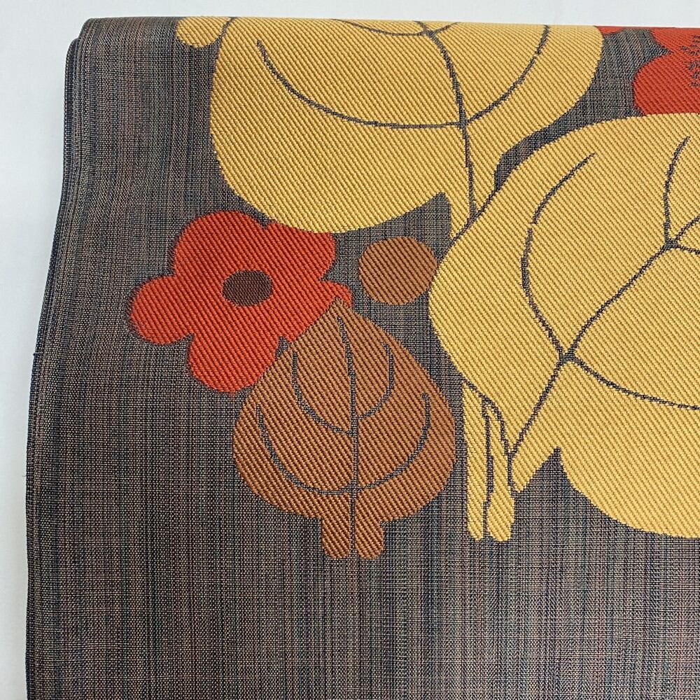 中古 洒落袋帯 正絹 草花 六通柄 ブラウン Bランク 430cm 5416