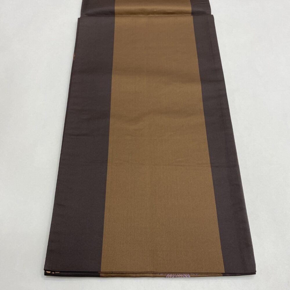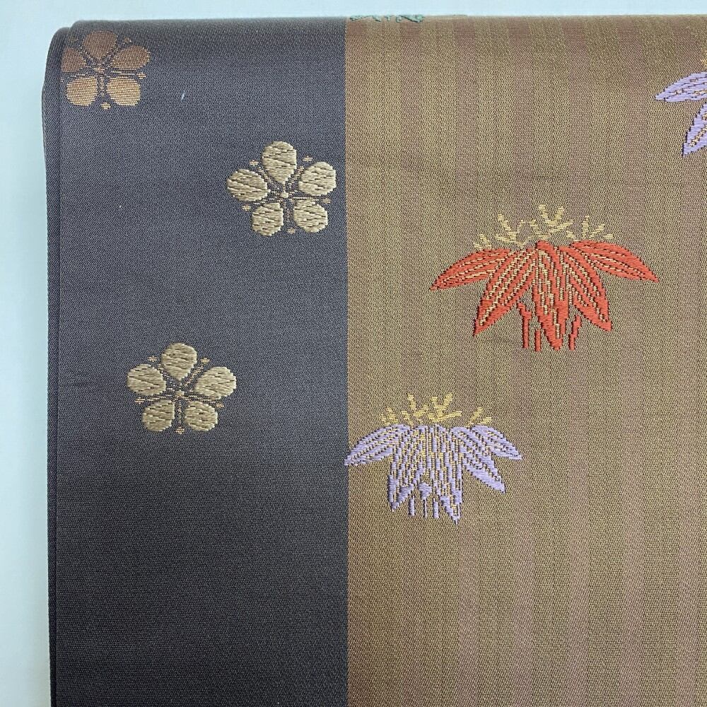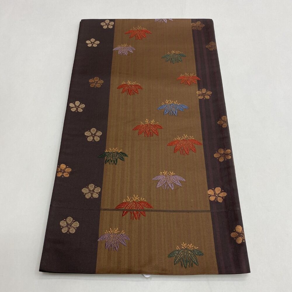 中古 洒落袋帯 正絹 草花 六通柄 ブラウン Bランク 438cm 5447