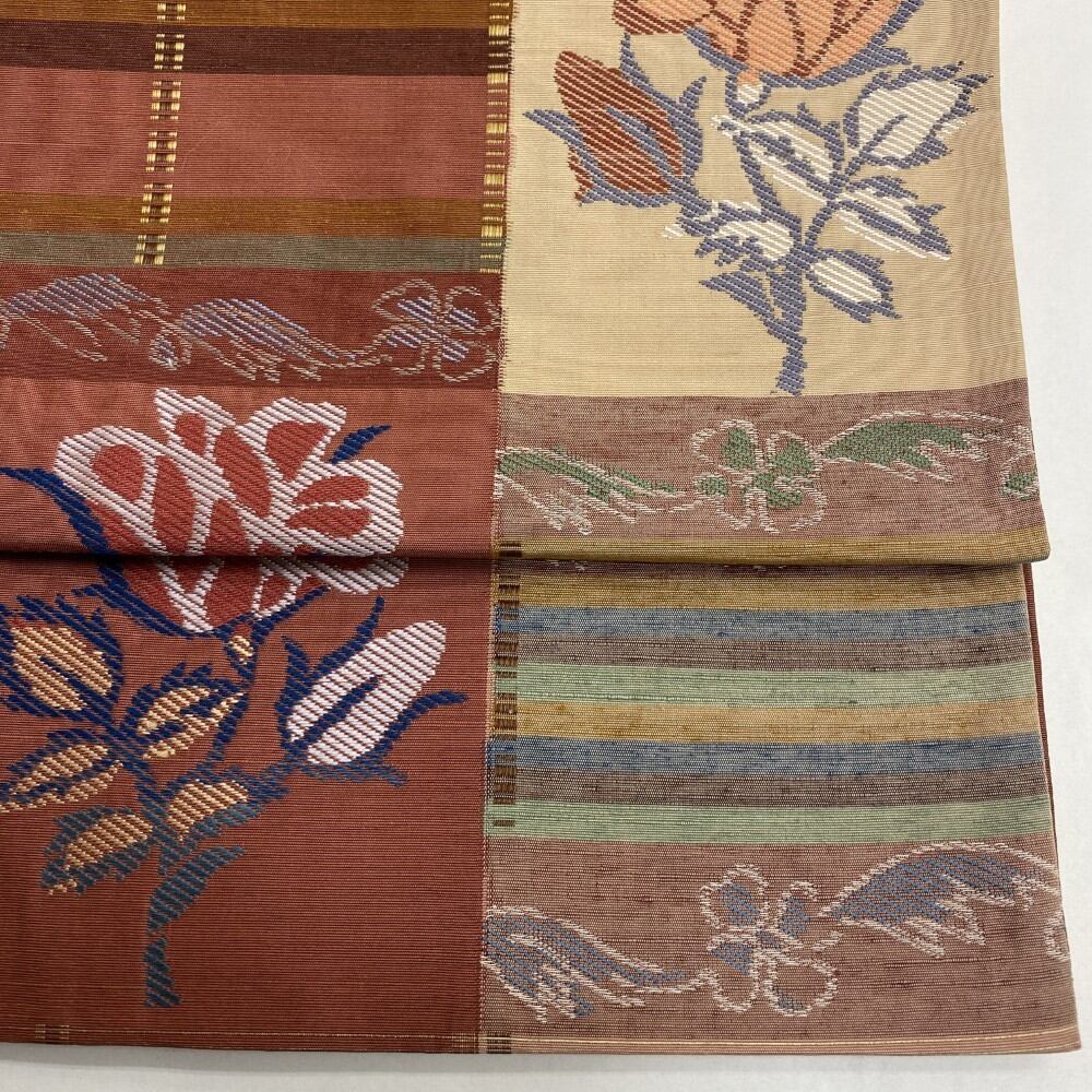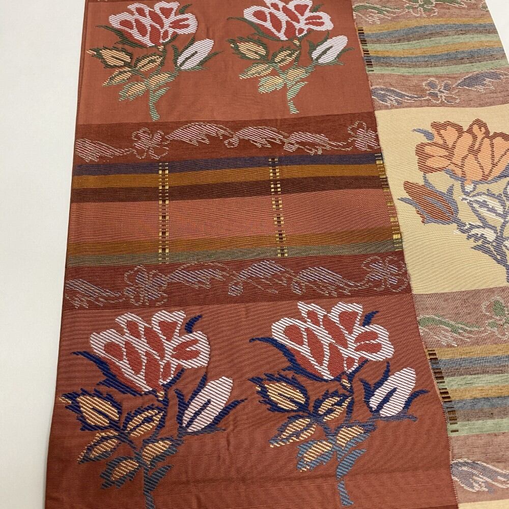 【コメント】小紋や紬、色無地といったカジュアルな着物に合わせる洒落袋帯です。
