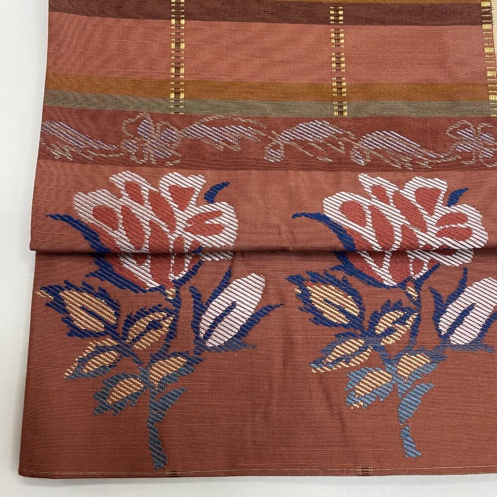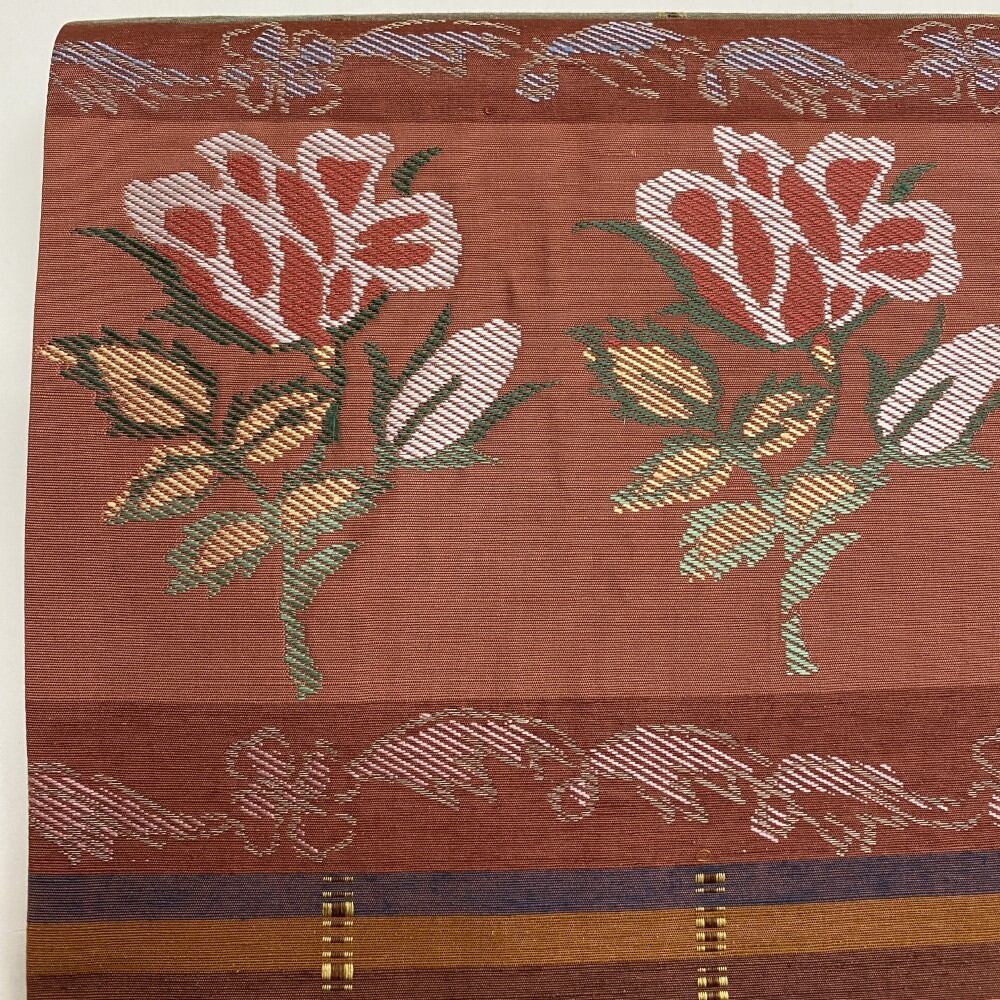 中古 洒落袋帯 正絹 草花 六通柄 レッド Bランク 422cm 5498
