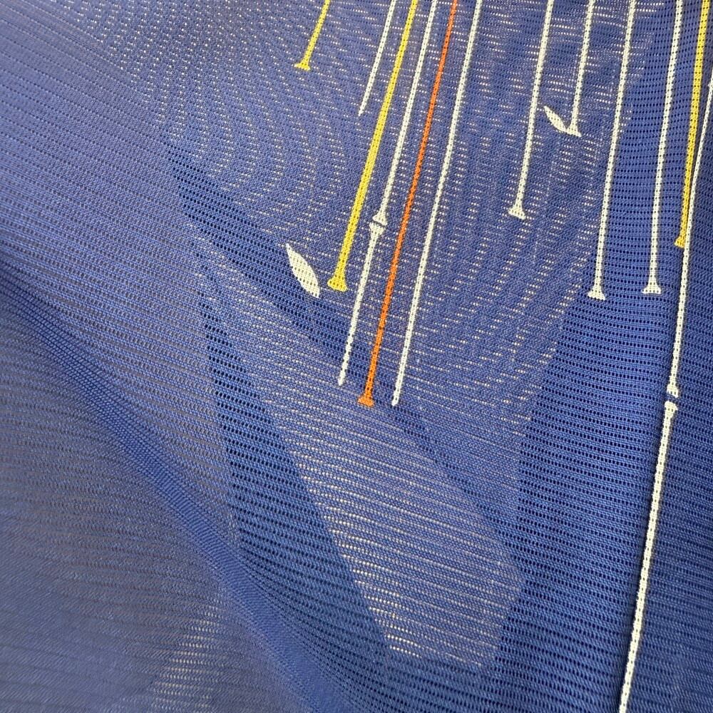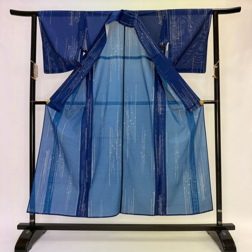 小紋 夏 絽 夏用 洗える着物 裄62.5cm 身丈153.5cm 花柄 お洒落着 普段着 ポリエステル 青 美品 S サイズ 5538