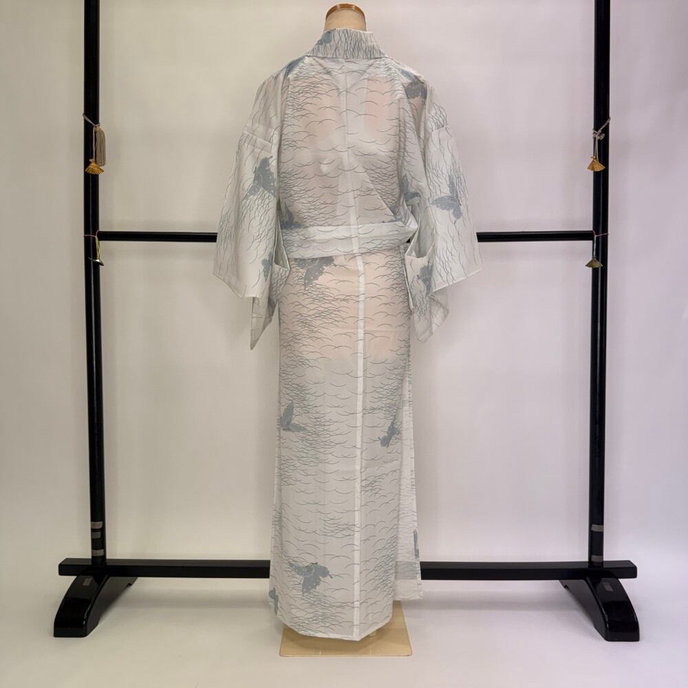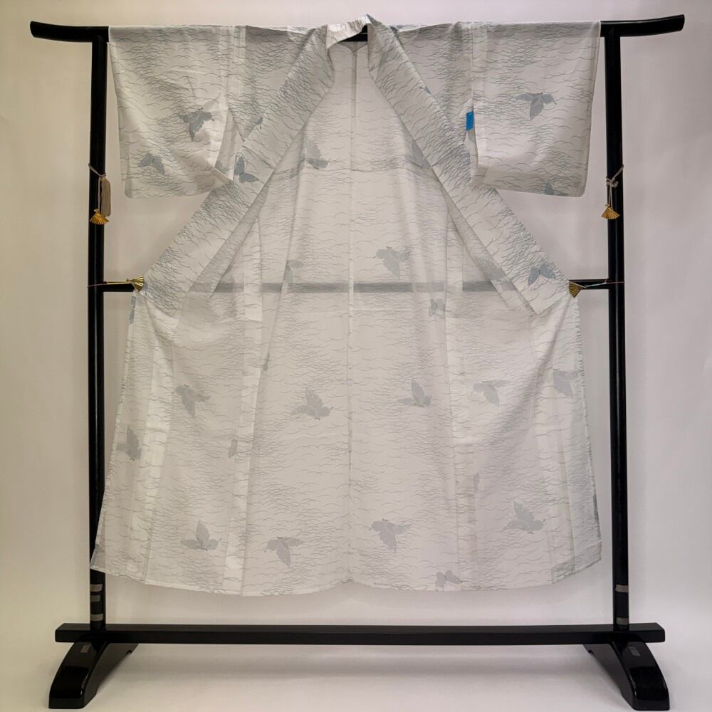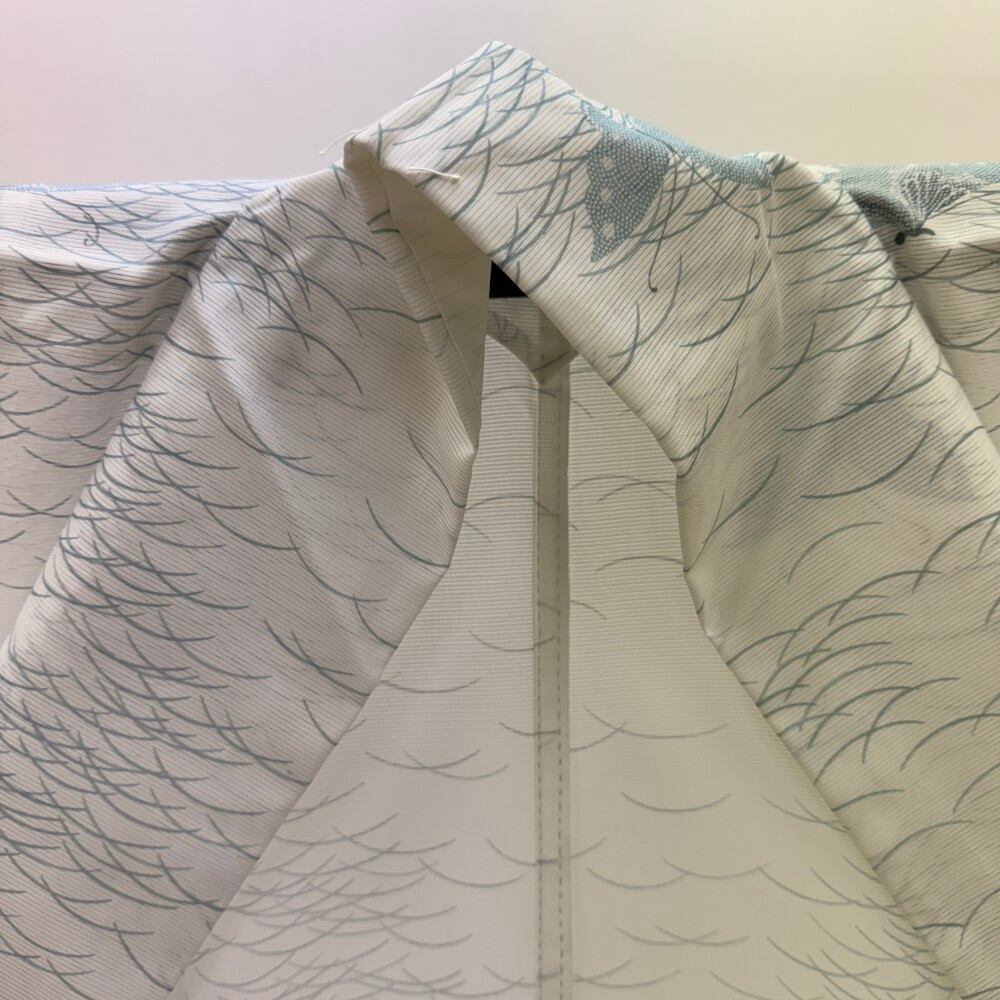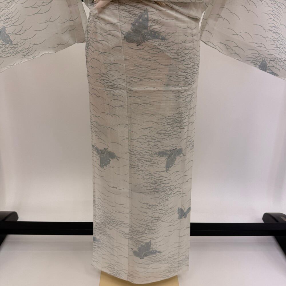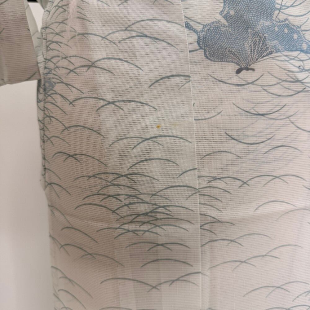 小紋 夏 絽 夏用 洗える着物 裄62.8cm 身丈149.5cm 花柄 お洒落着 普段着 ポリエステル 白 美品 S サイズ 5542