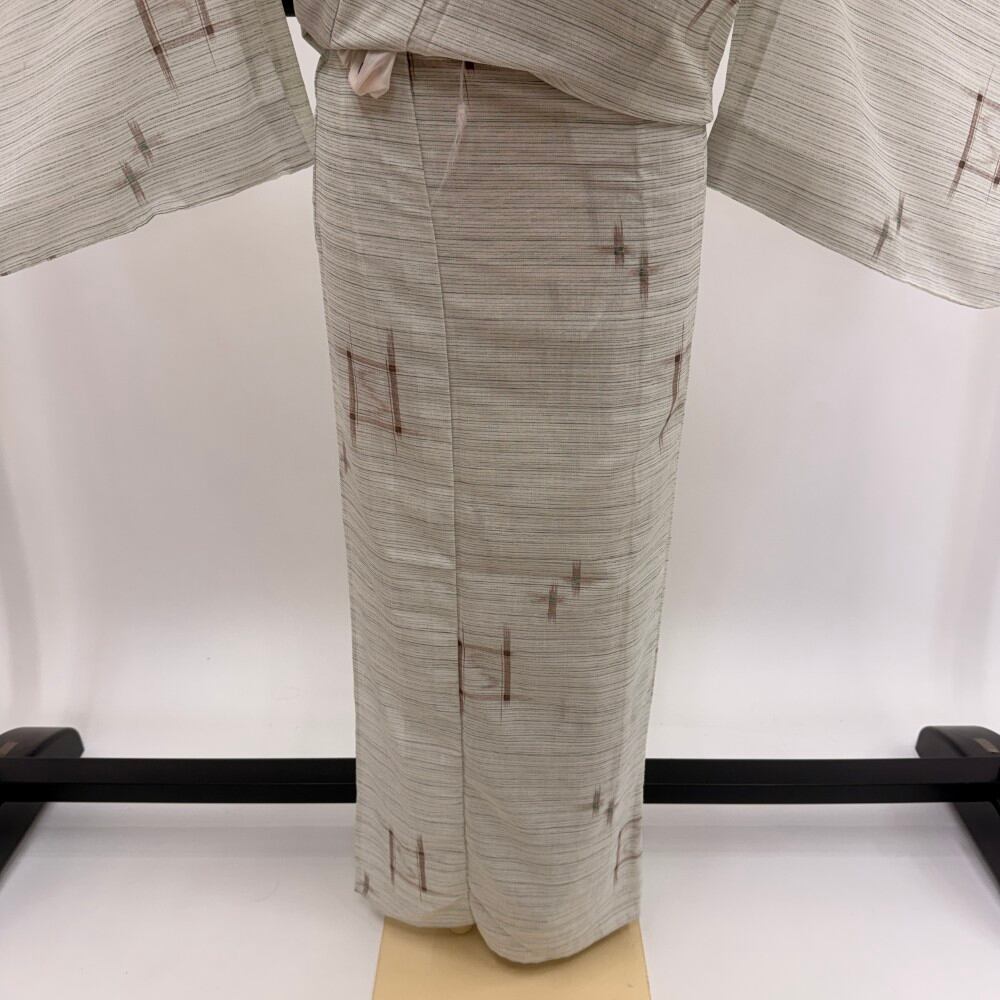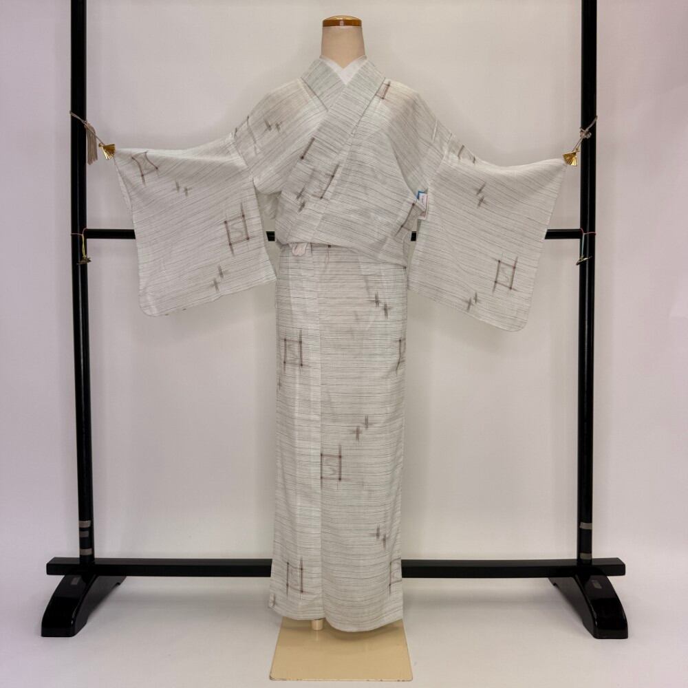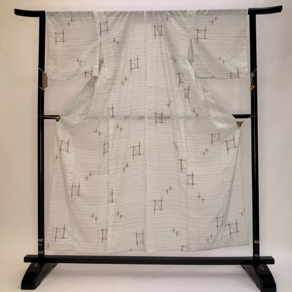 小紋 夏 紗 夏用 洗える着物 裄63.6cm 身丈156.5cm 花柄 お洒落着 普段着 ポリエステル 白 美品 S サイズ 5548