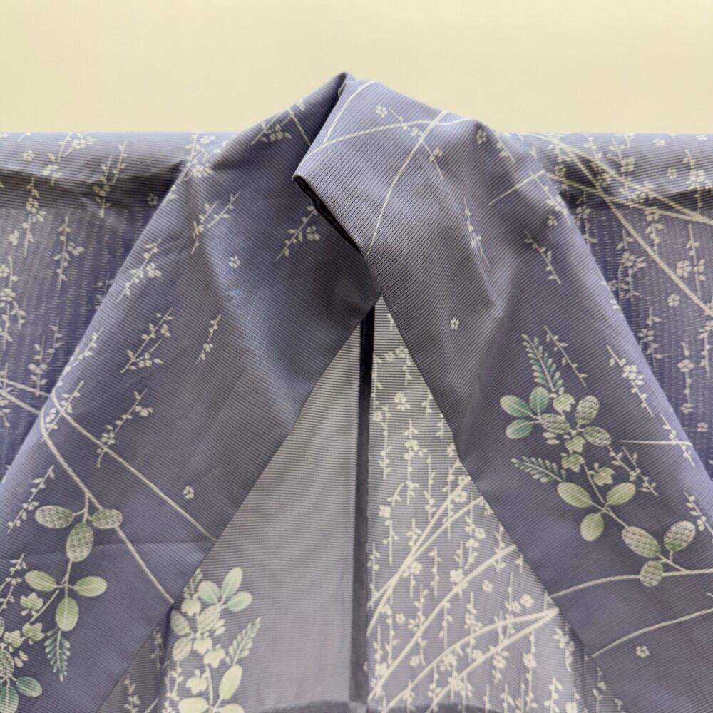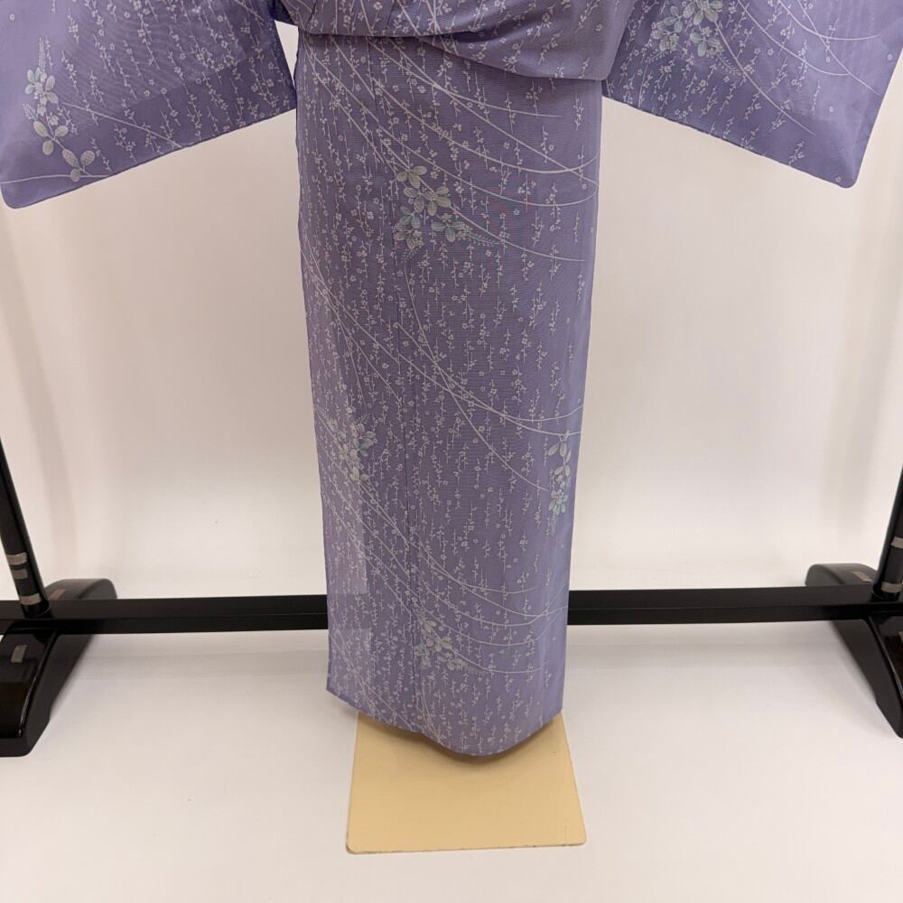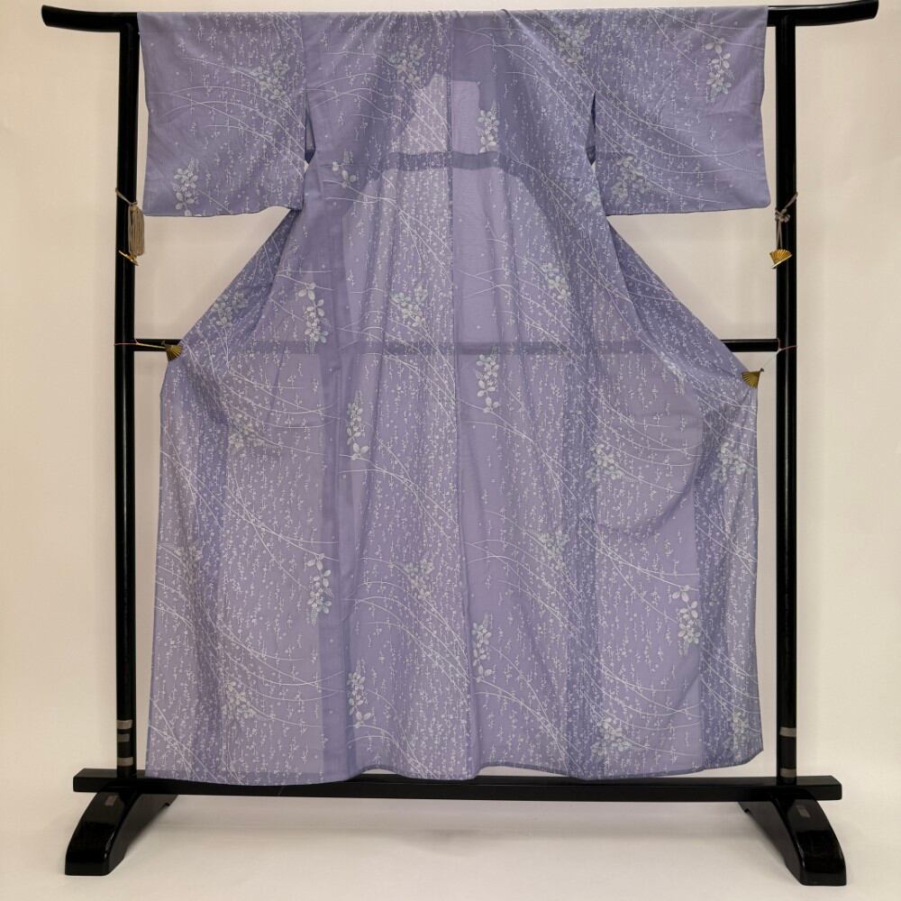 小紋 夏 絽 夏用 洗える着物 裄63.6cm 身丈160cm 花柄 お洒落着 普段着 ポリエステル 薄い紫 美品 S サイズ 5552