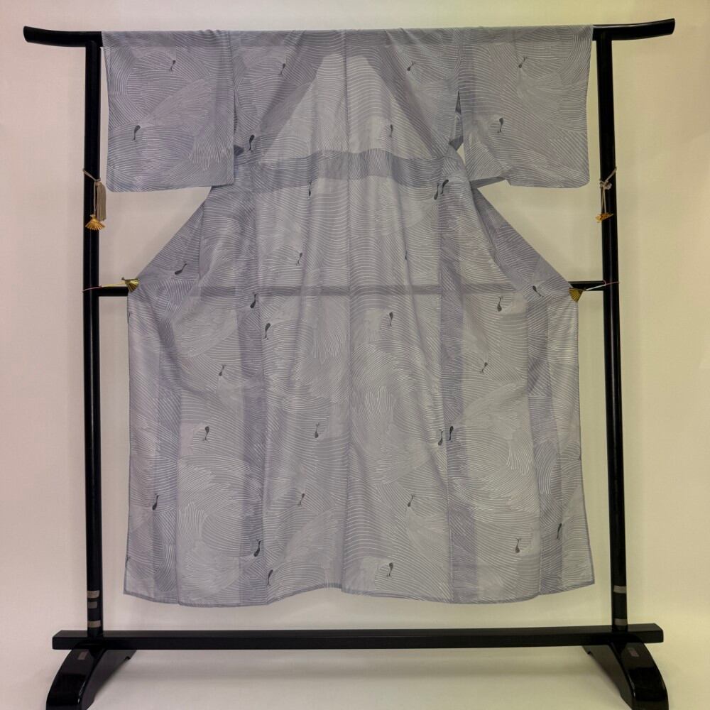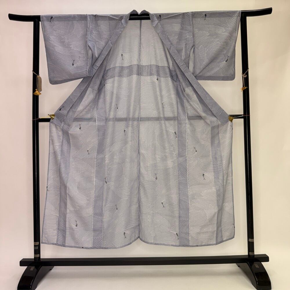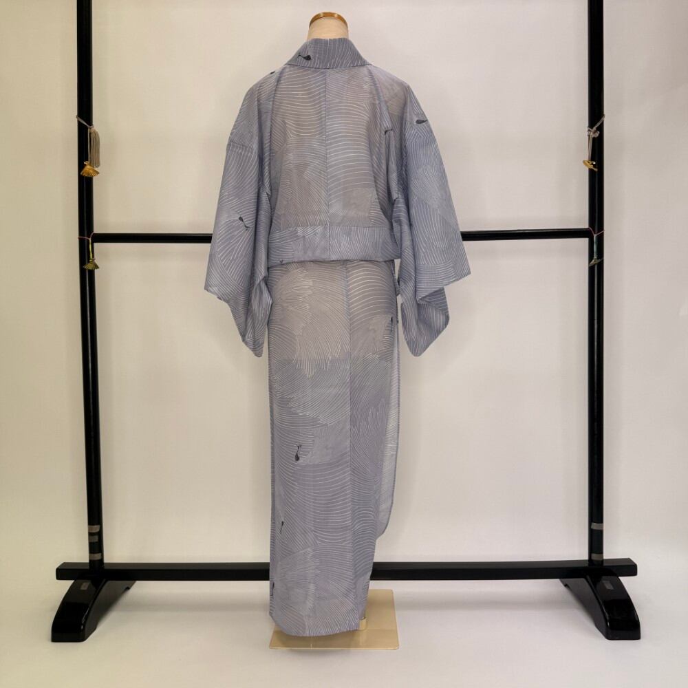 小紋 夏 絽 夏用 洗える着物 裄63.6cm 身丈152.5cm お洒落着 普段着 ポリエステル グレー 美品 S サイズ 5554