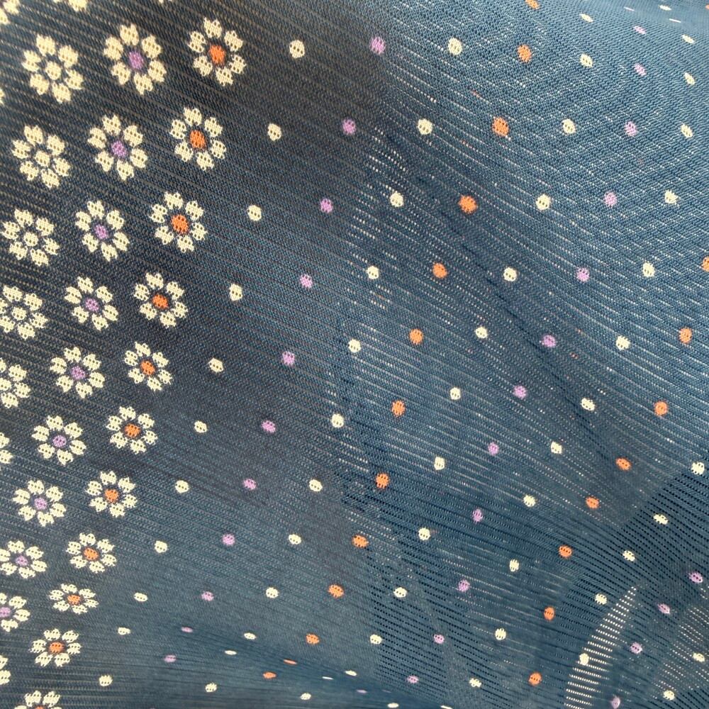小紋 夏 絽 夏用 洗える着物 裄64.3cm 身丈165.3cm お洒落着 普段着 ポリエステル 深い緑 中古 M サイズ 5566