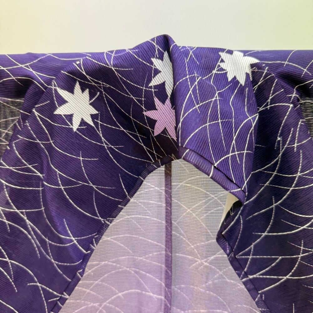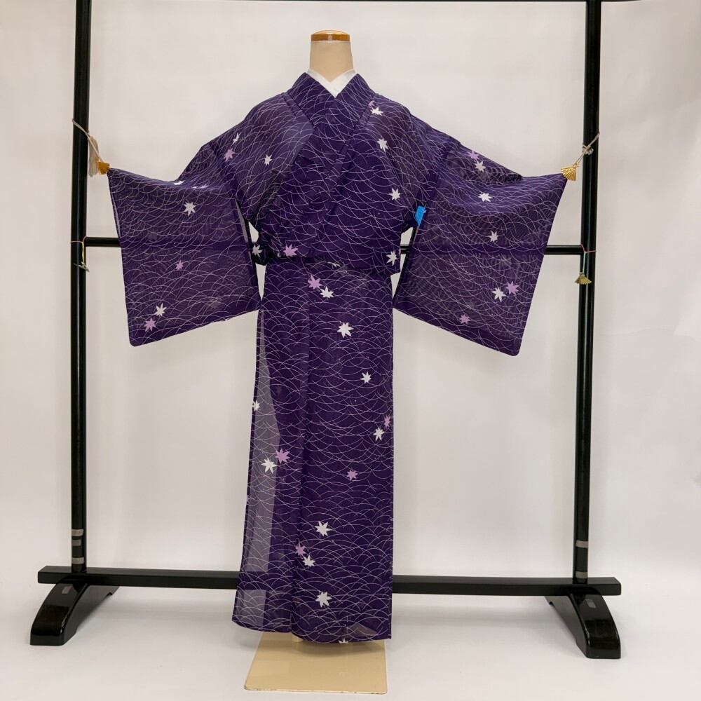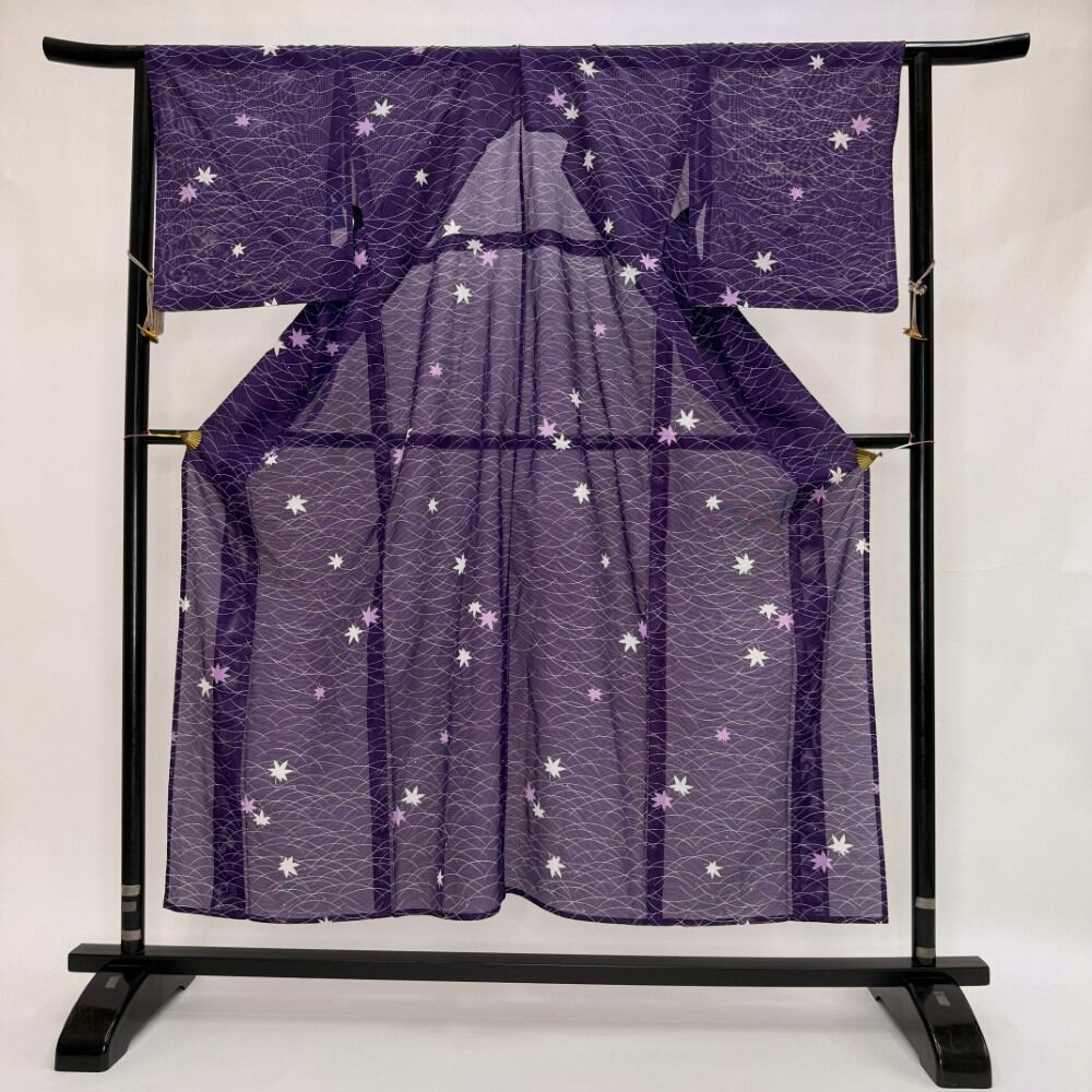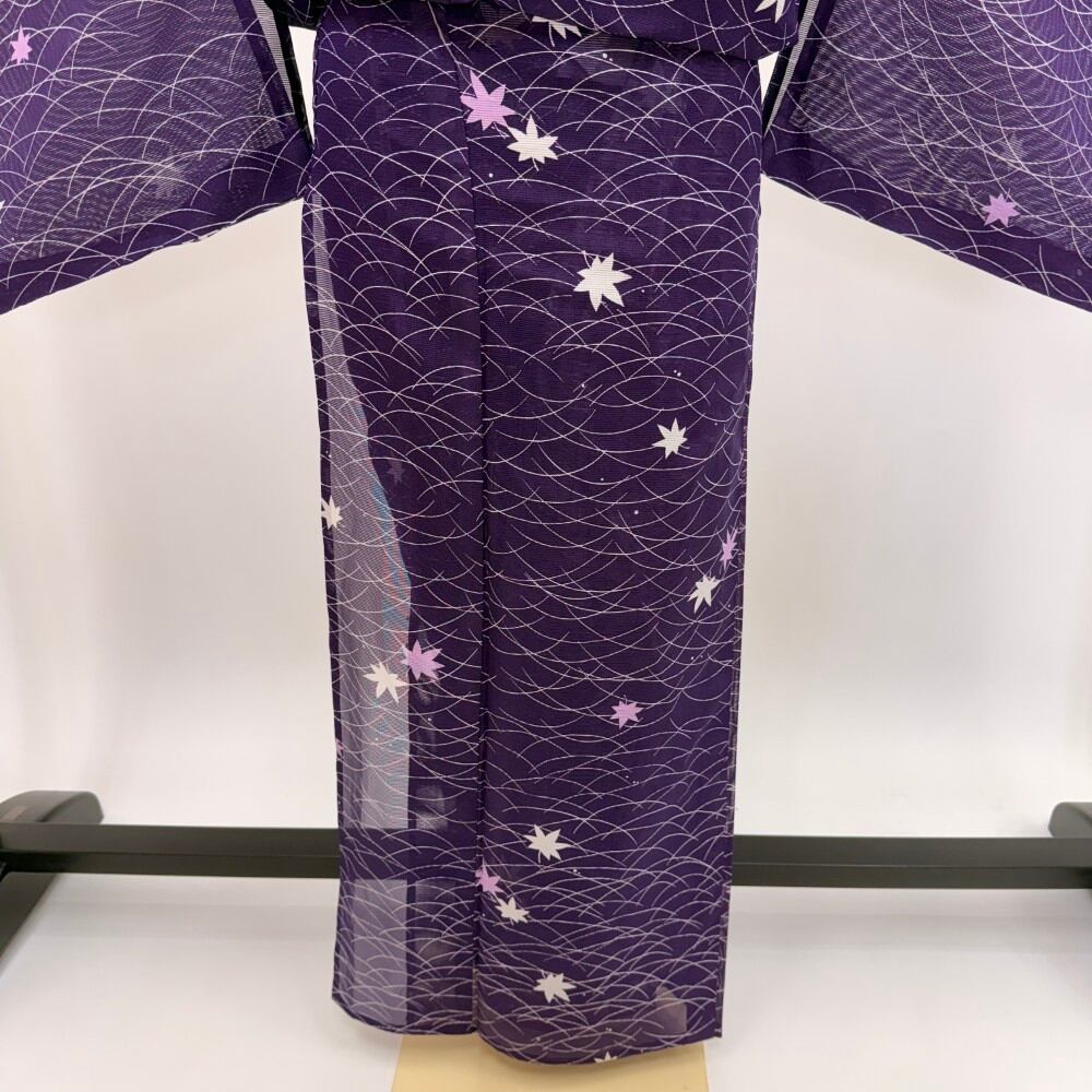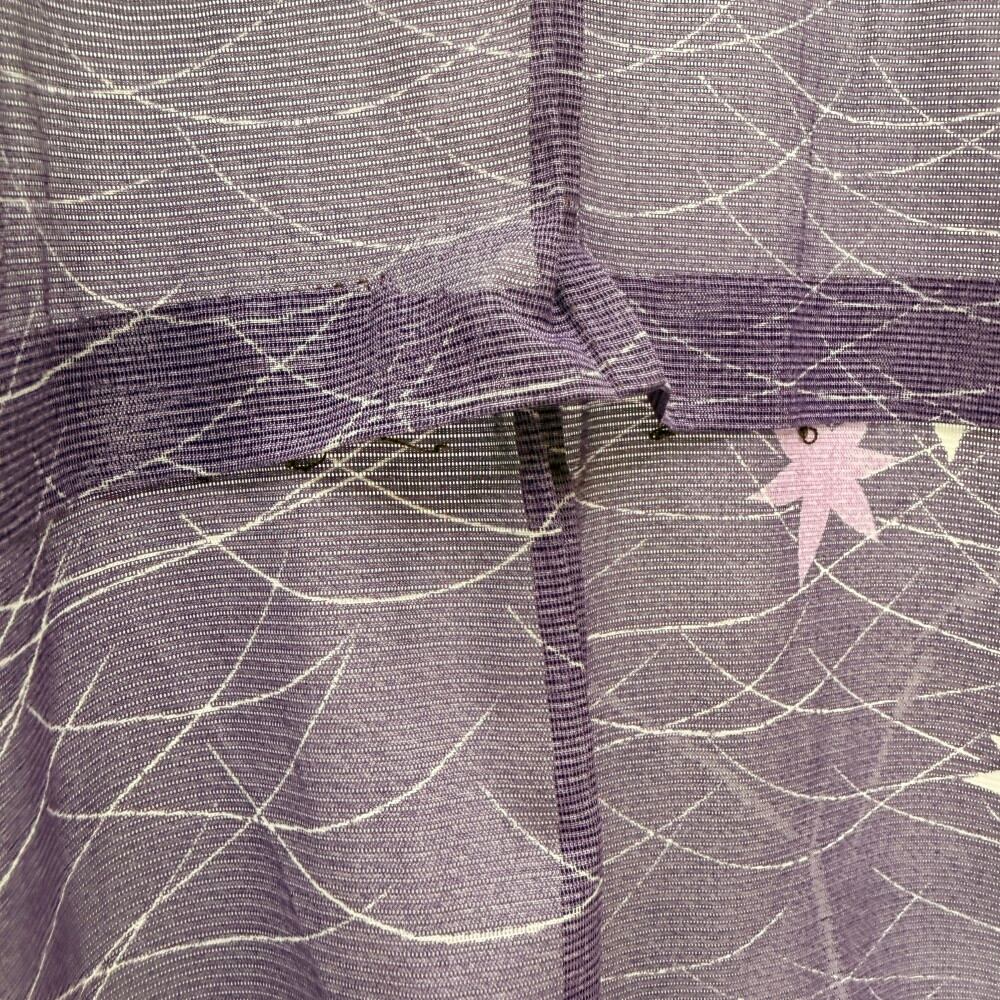 小紋 夏 絽 夏用 洗える着物 裄64.8cm 身丈154.5cm お洒落着 普段着 ポリエステル 紫 中古 M サイズ 5579