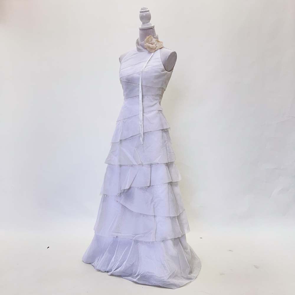 ウェディングドレス 9号T アメリカンスリーヴ 中古 シンプル スレンダー オフホワイト W-269