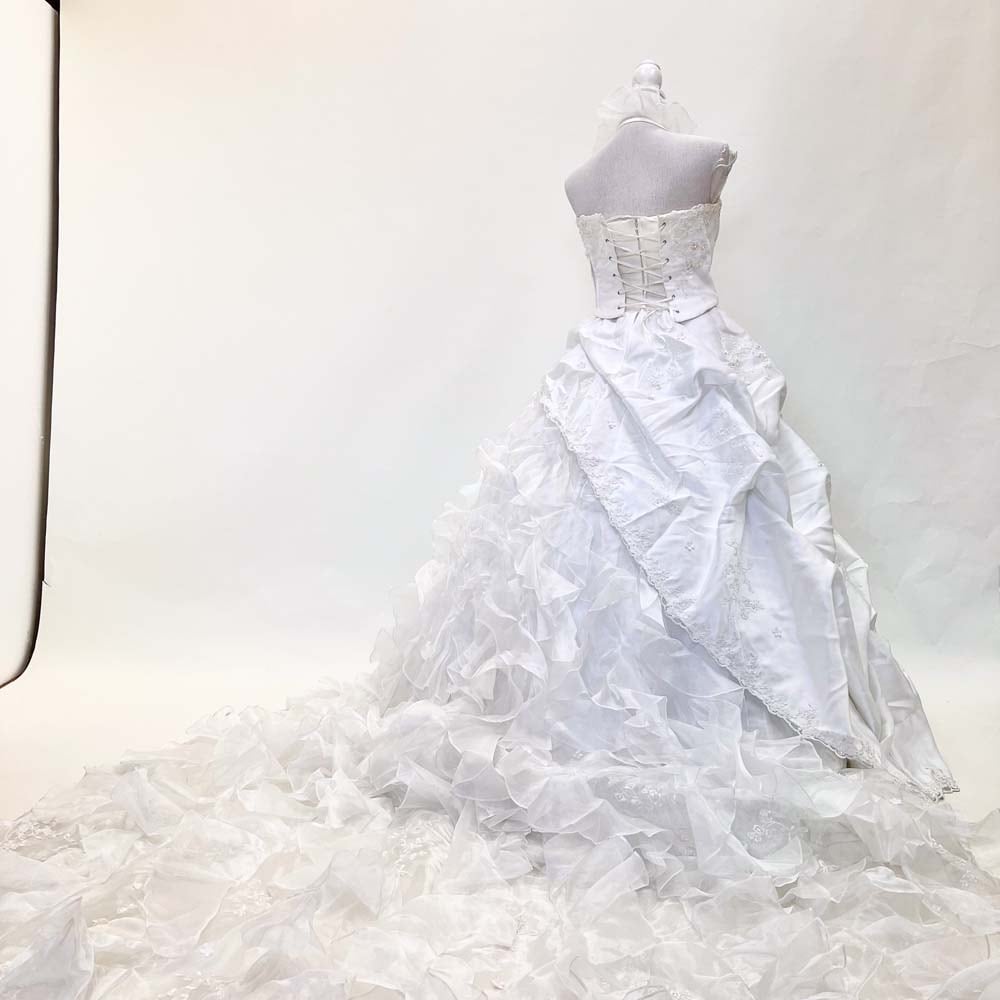 ウェディングドレス 9号FT 9~11号程度 ホルターネック 中古 プリンセス ホワイト W-270