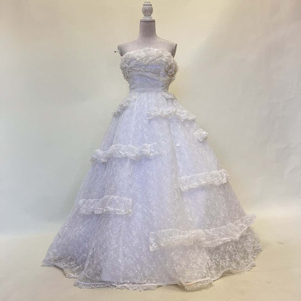 中古 プリンセスライン レースたっぷりのウェディングドレス 結婚式 フォトウェディング 前撮り 演奏会 ステージドレス W-277