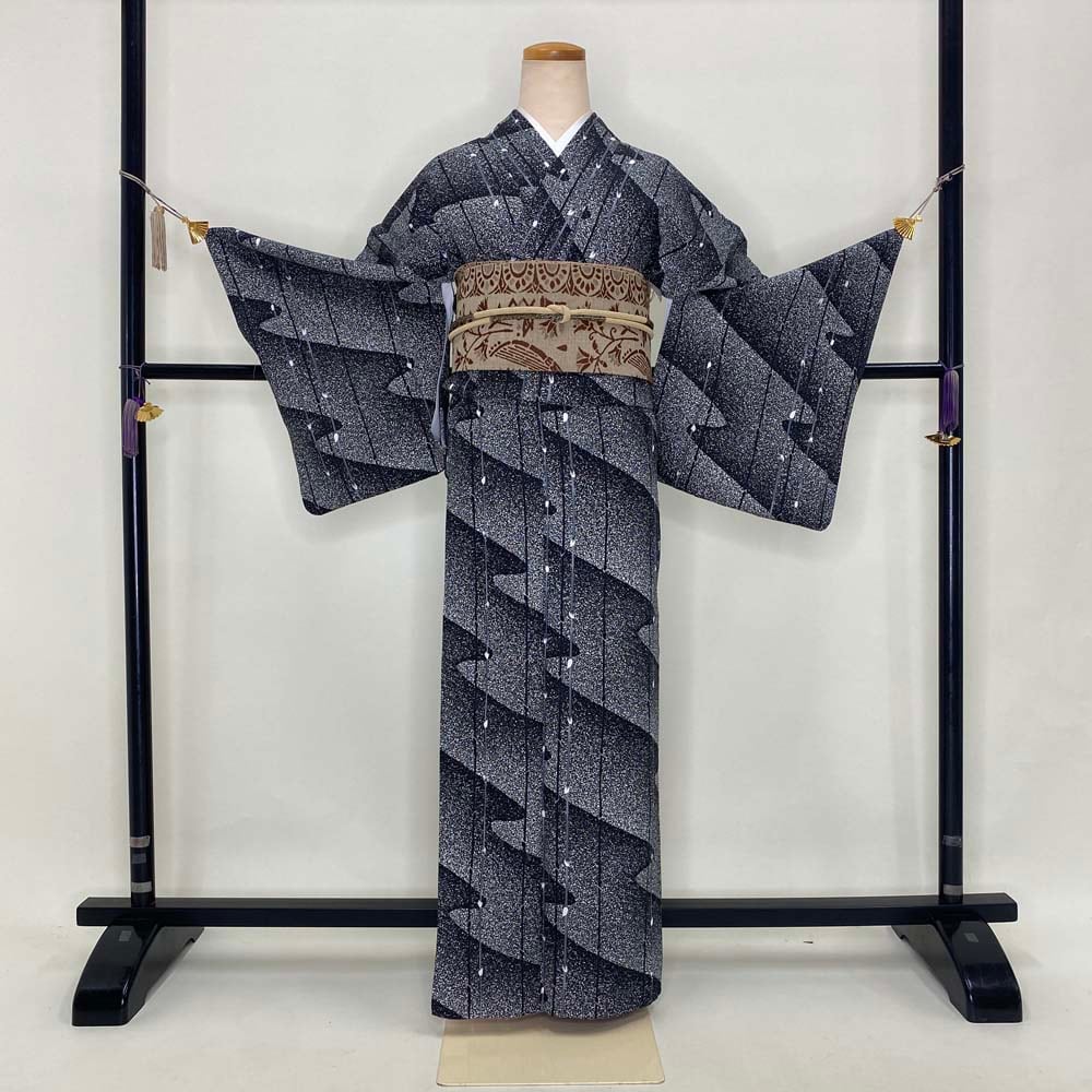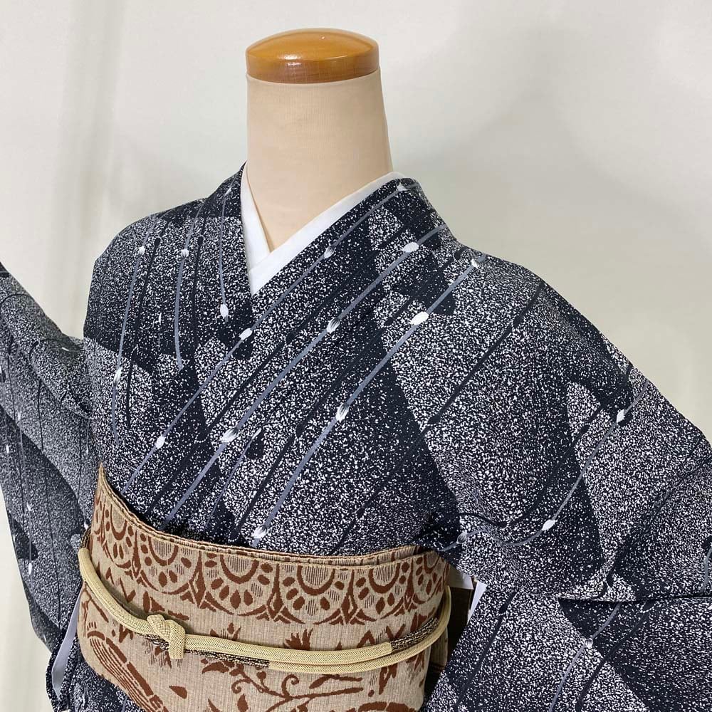 着物セット 3点セット おしゃれセット小紋 裄66cm Mサイズ リサイクル着物 安い ポリエステル 中古 普段着 洒落着 リユース 3253